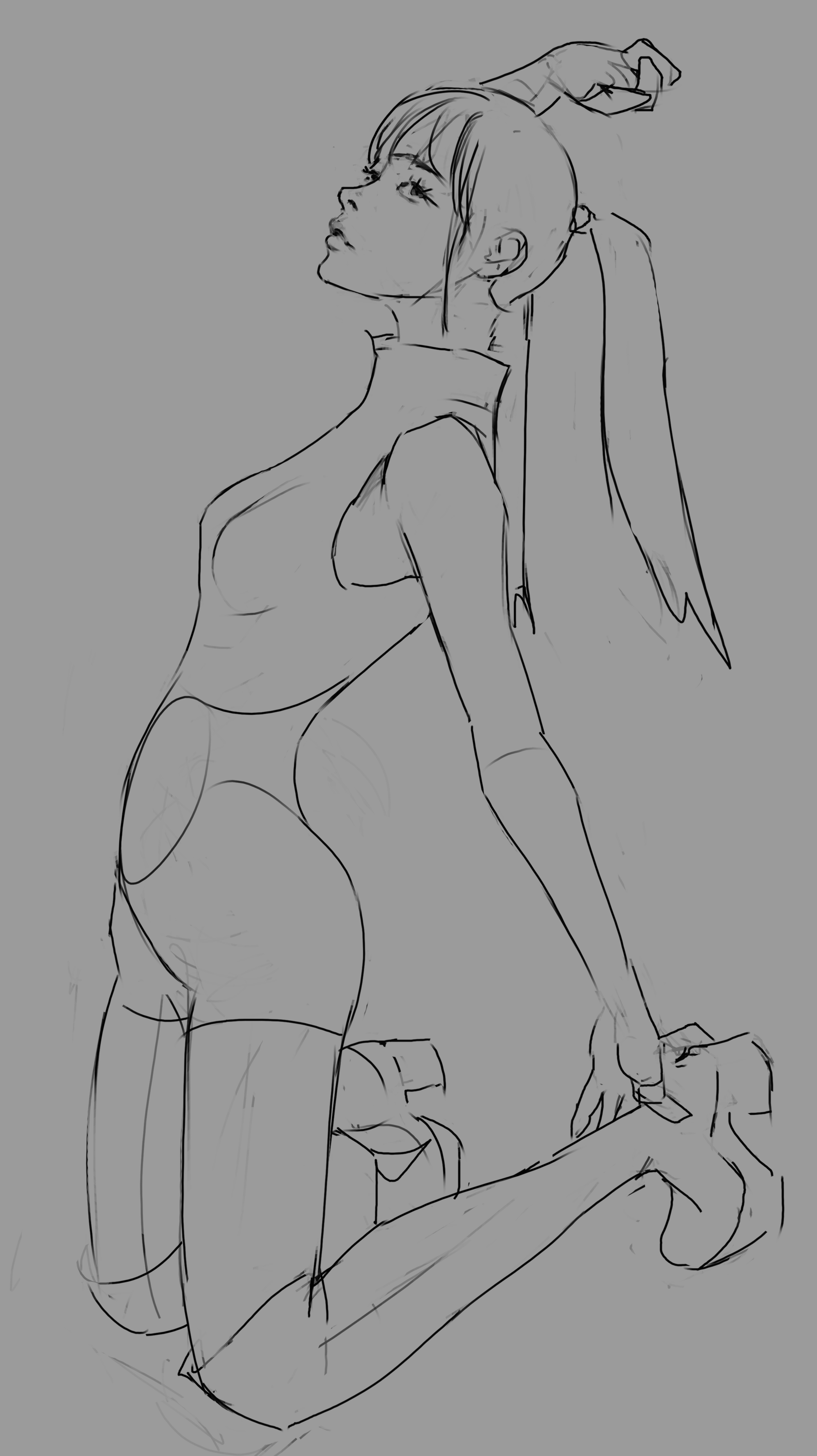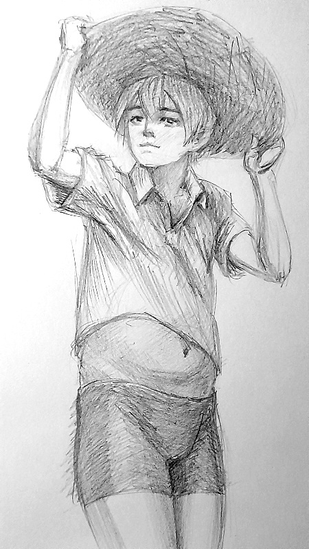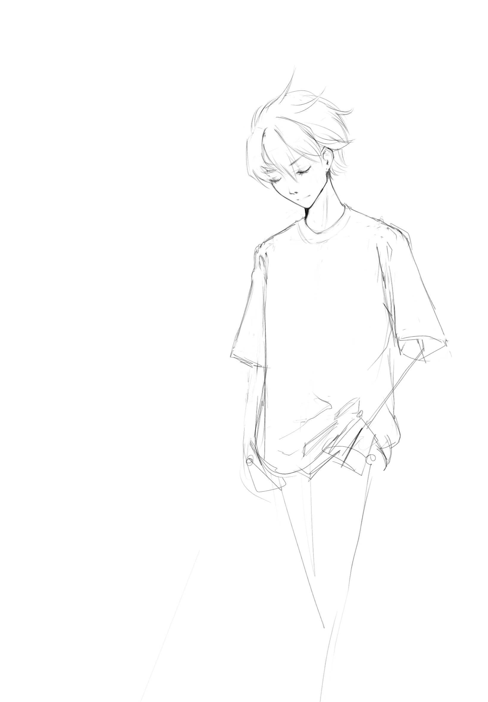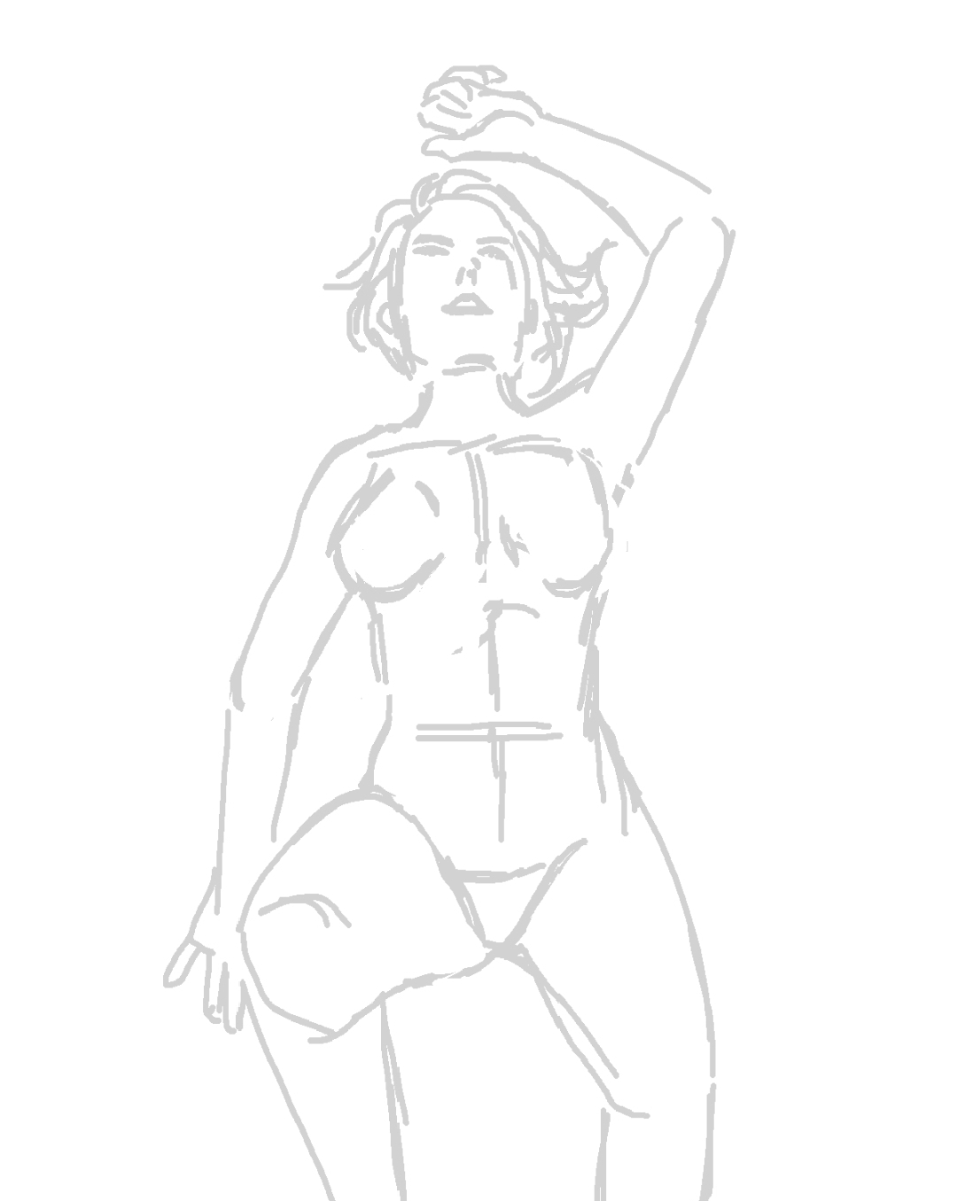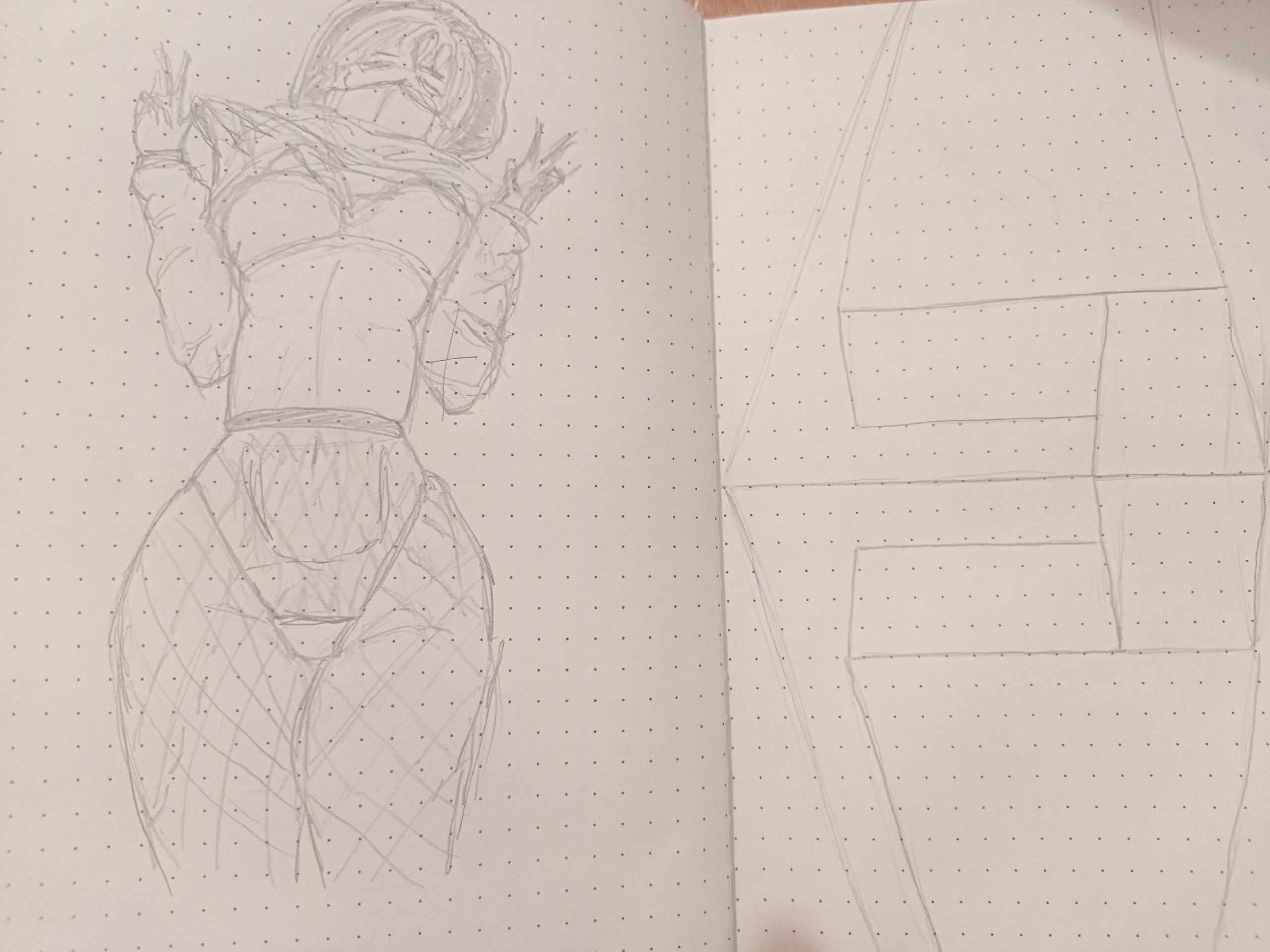Во-вторых, постарайся всегда на скетче рисовать манекен, а не человека с еблом и прорисованными волосами. Если ты уже умеешь рисовать манекен, покажи как ты это делаешь, не стирай линии.