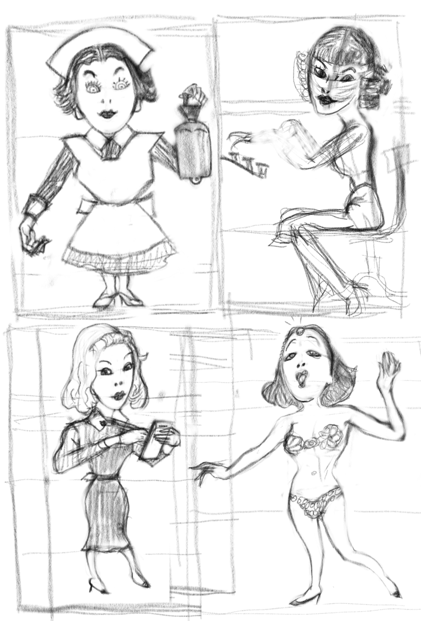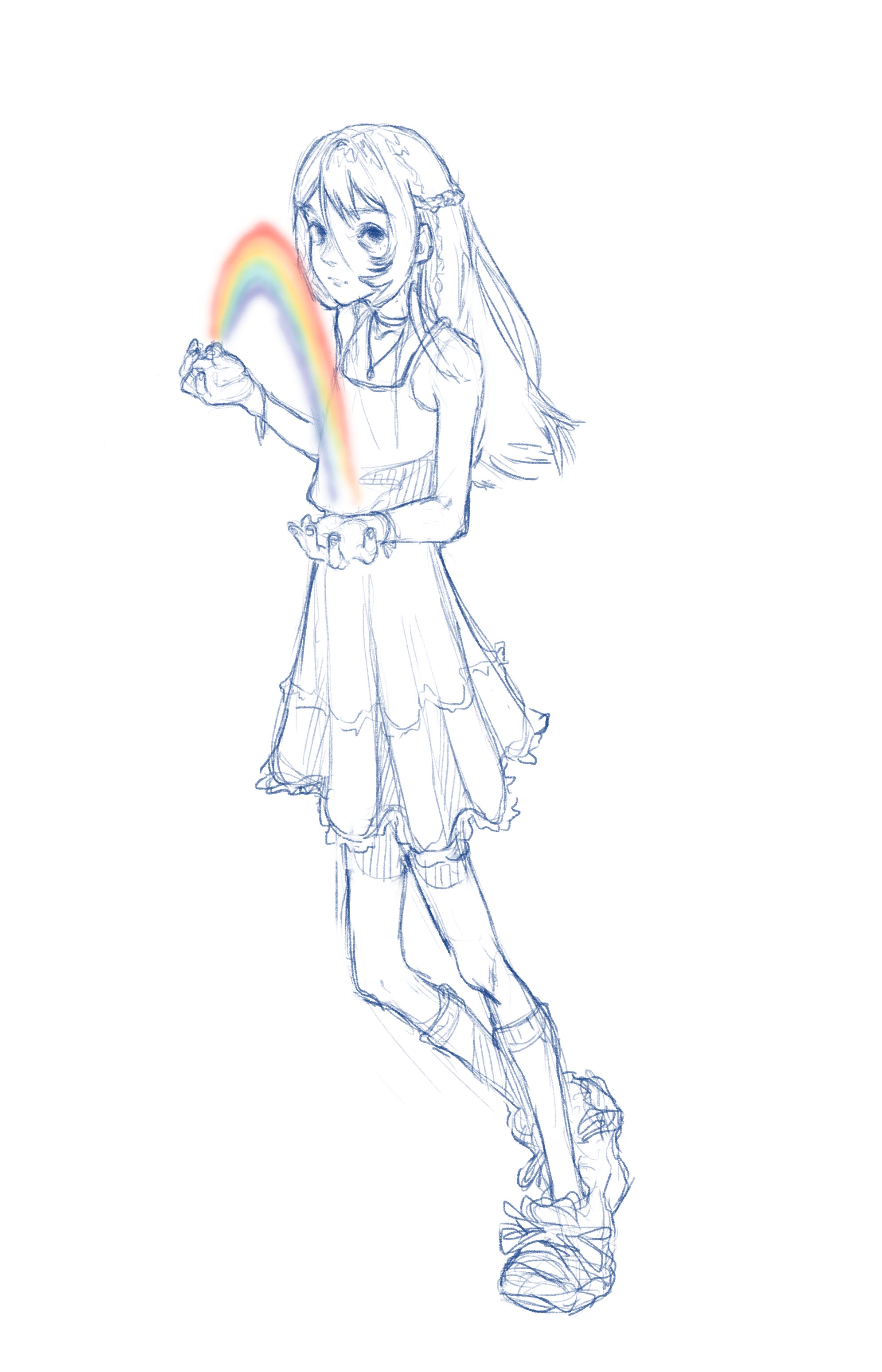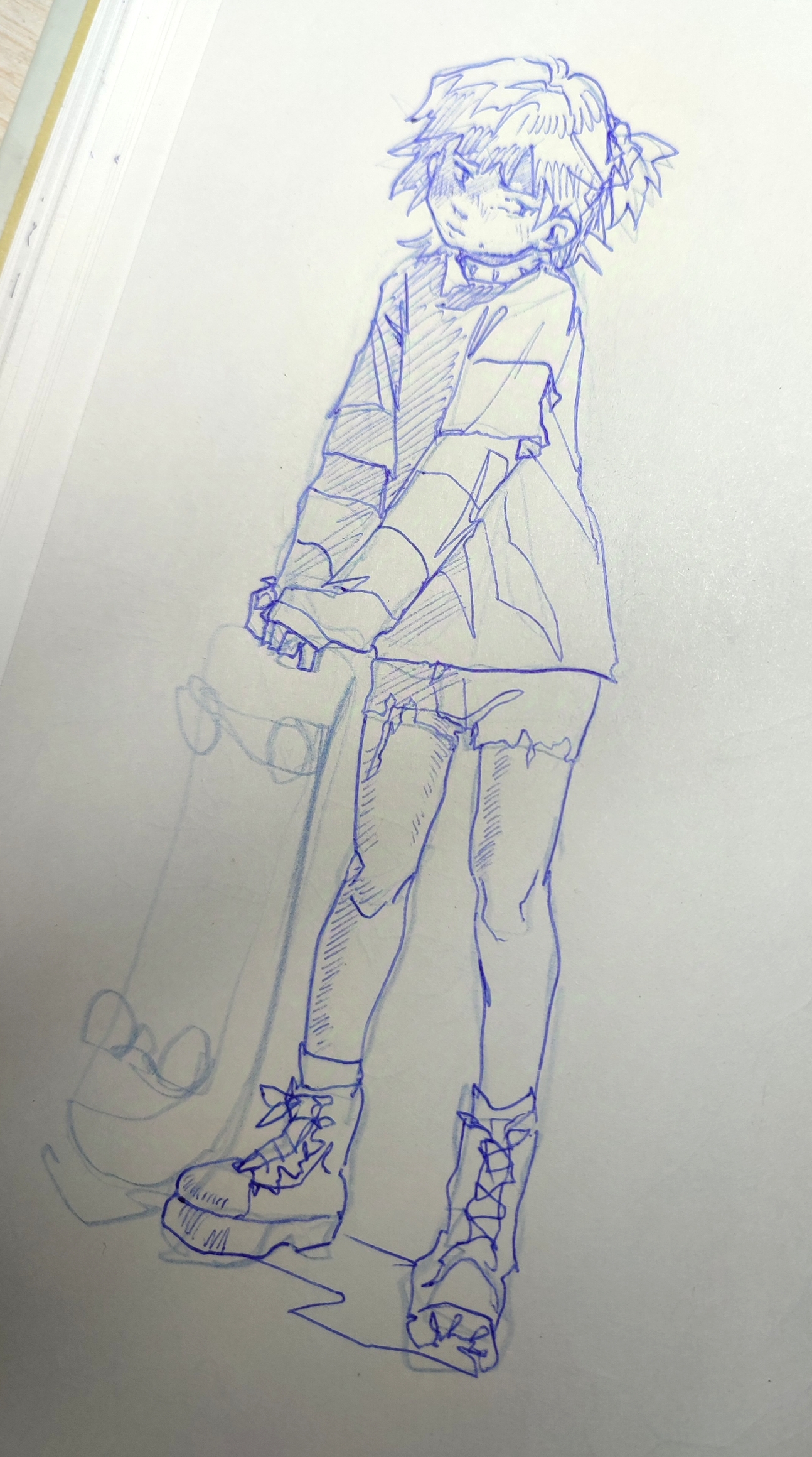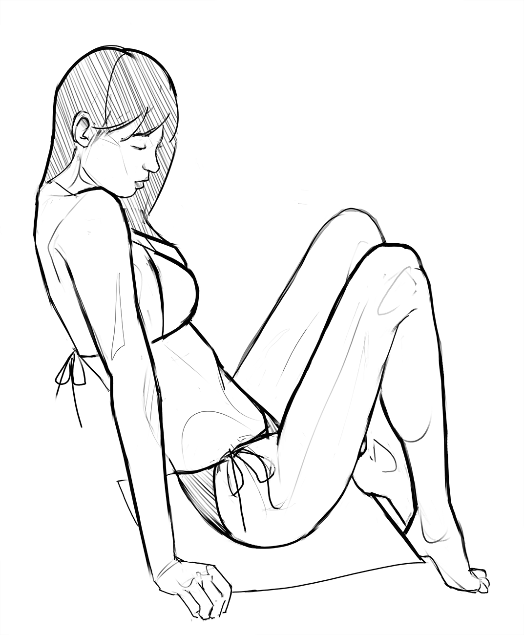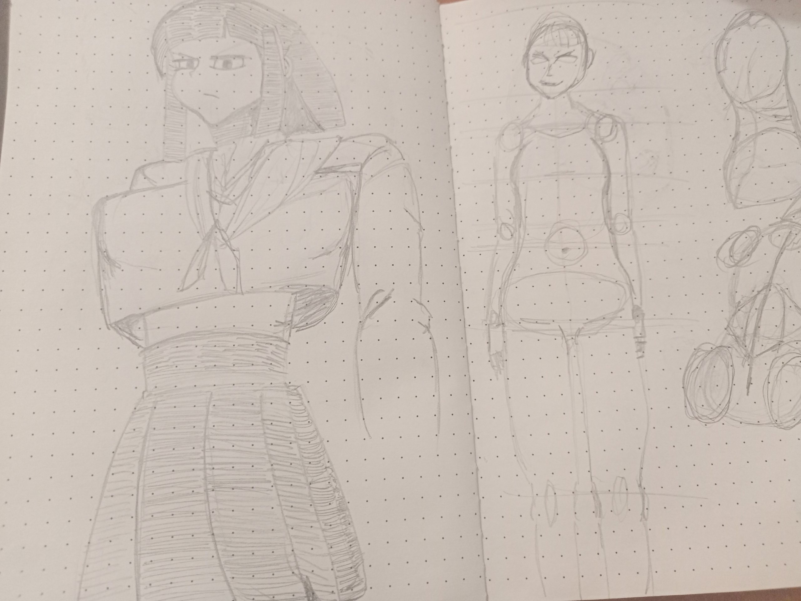 Во-вторых, постарайся всегда на скетче рисовать манекен, а не человека с еблом и прорисованными волосами. Если ты уже умеешь рисовать манекен, покажи как ты это делаешь, не стирай линии.