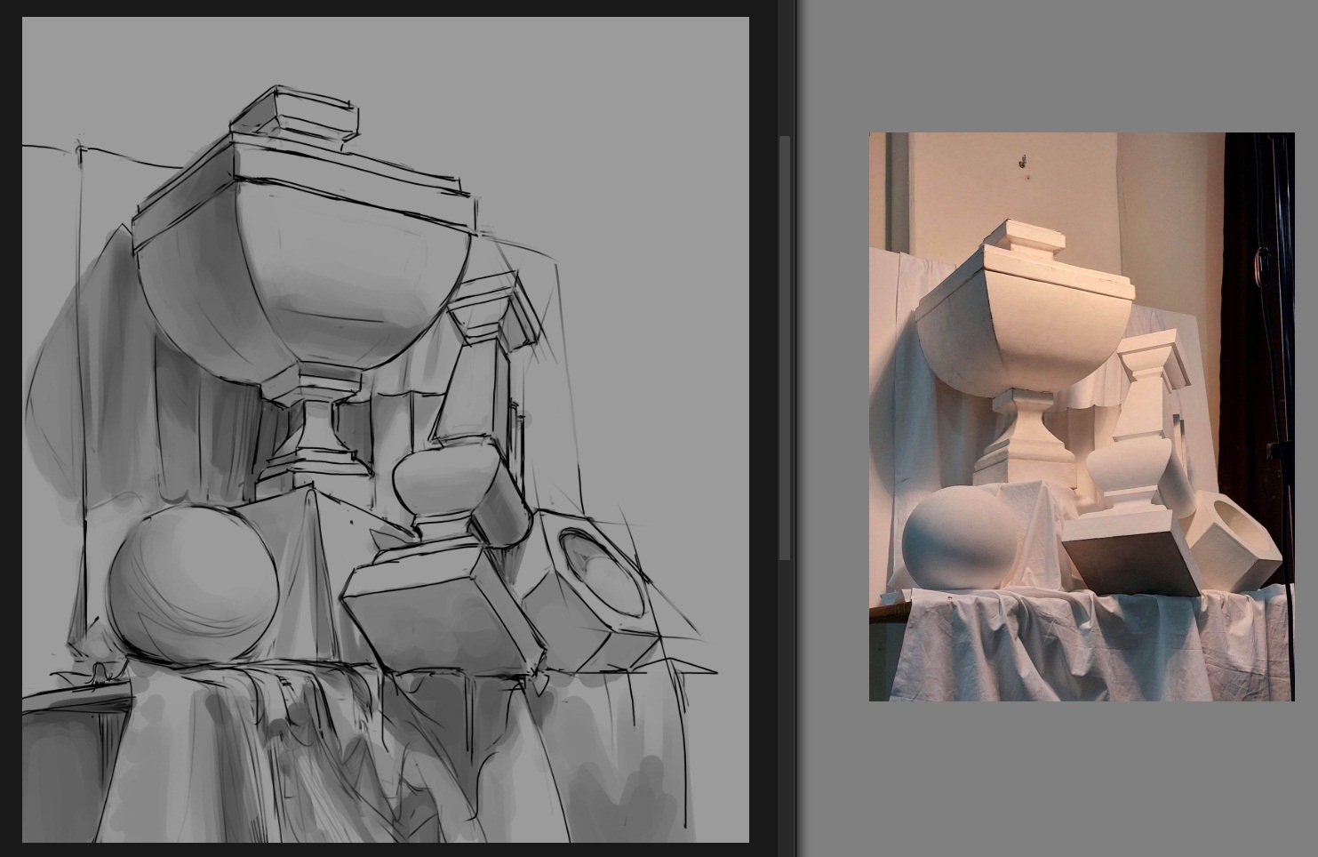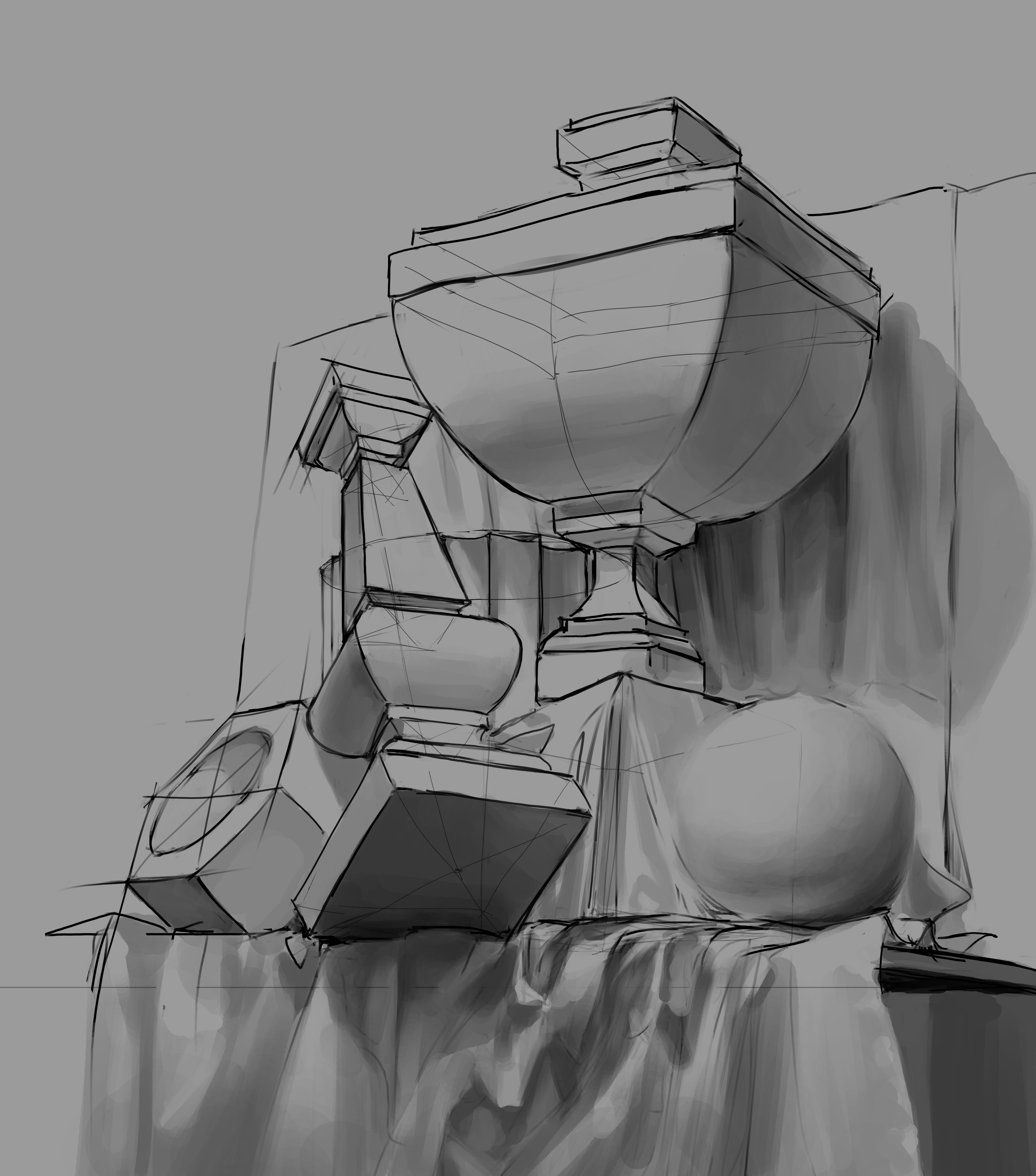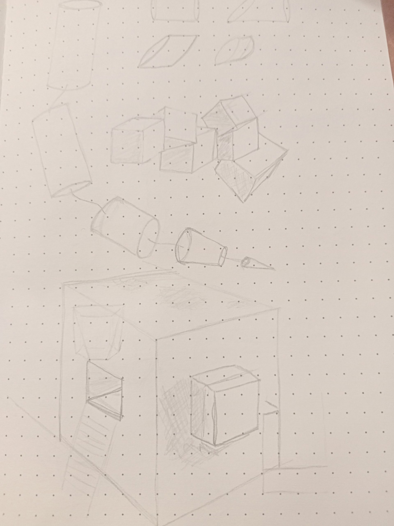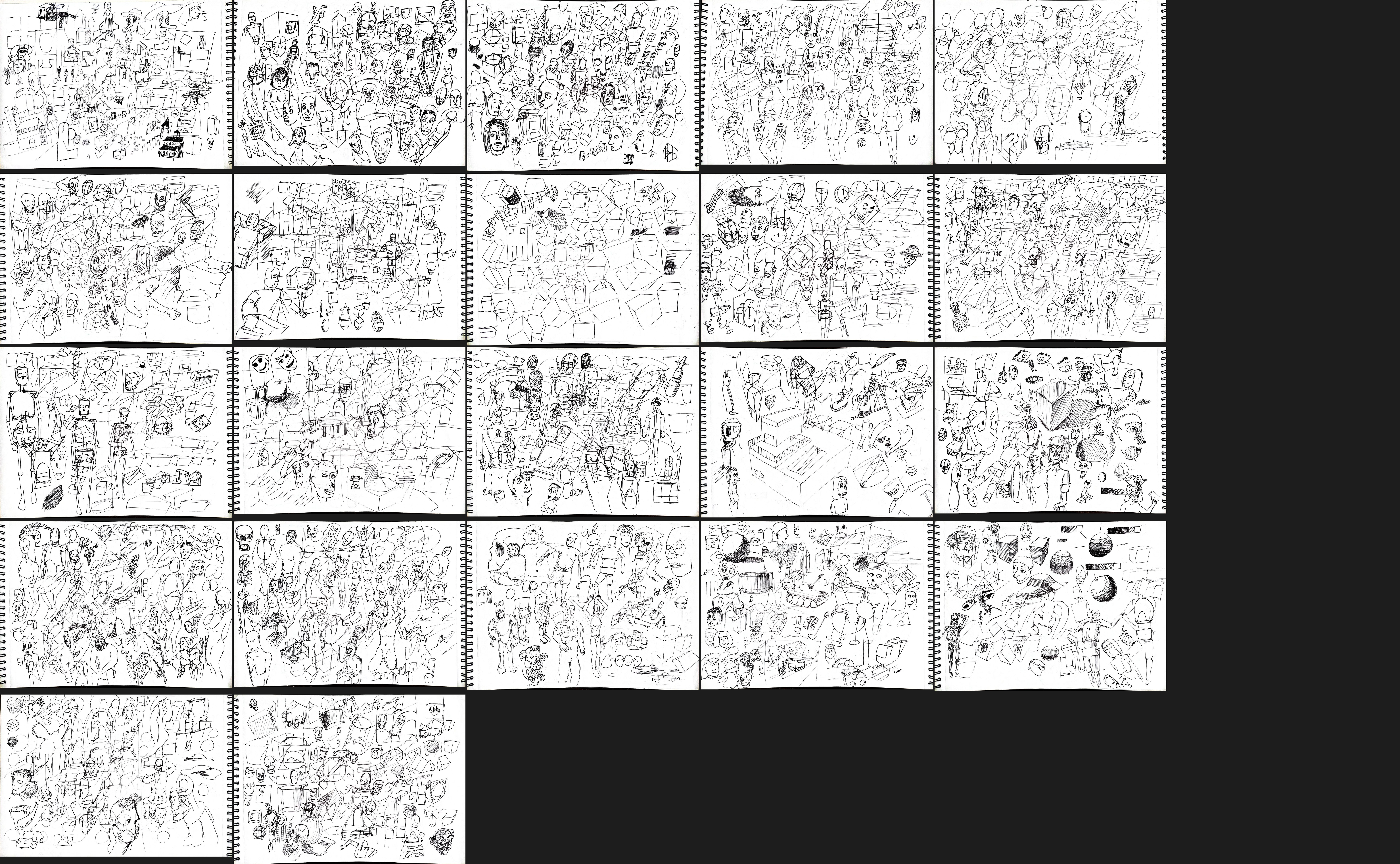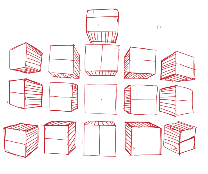 Вот у мя вроде какие-то простые вещи типо животных или роботов получаются, даже перспектива нормальная, но людишек сложно, особенно через кубы, они у меня кривые всегда получаются, хотя если просто линиями границы форм отрисовывать, то лучше.