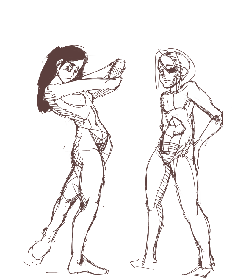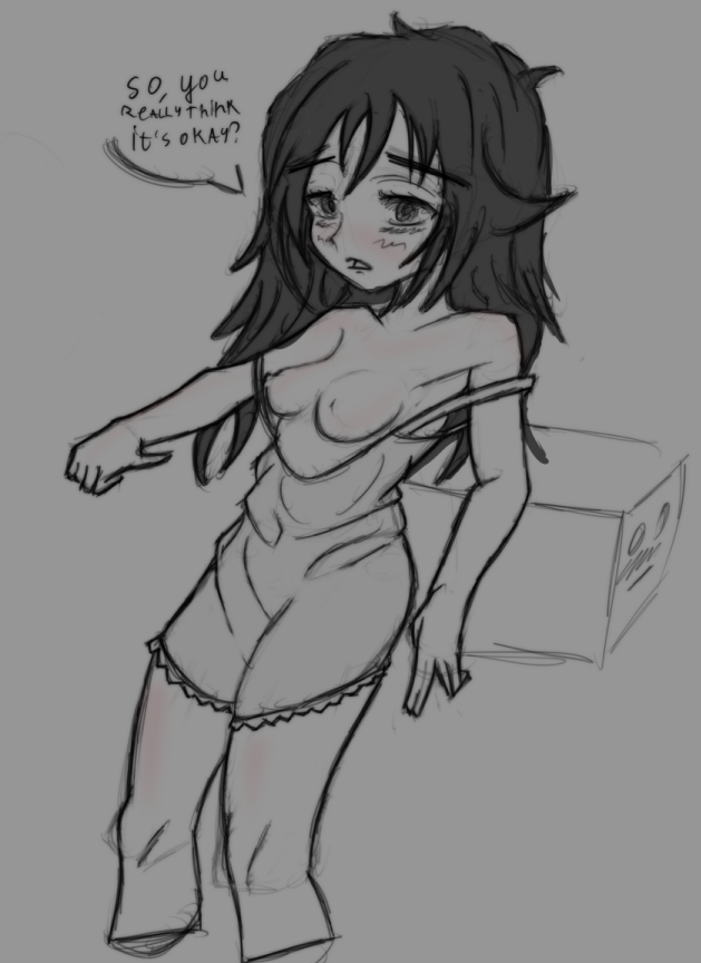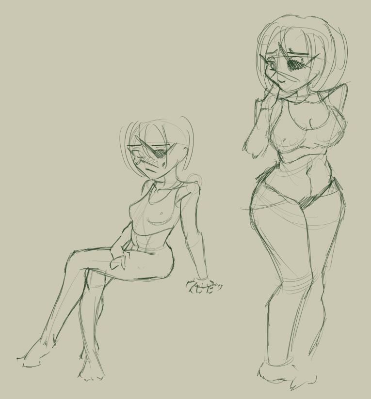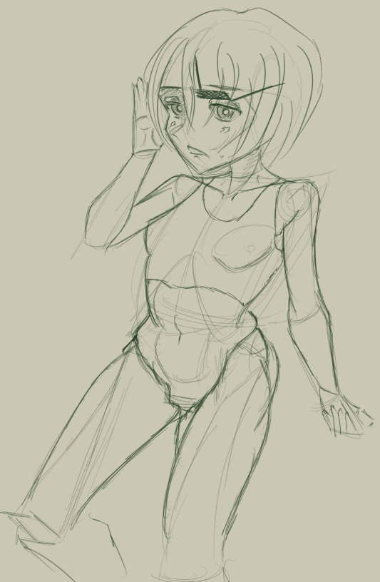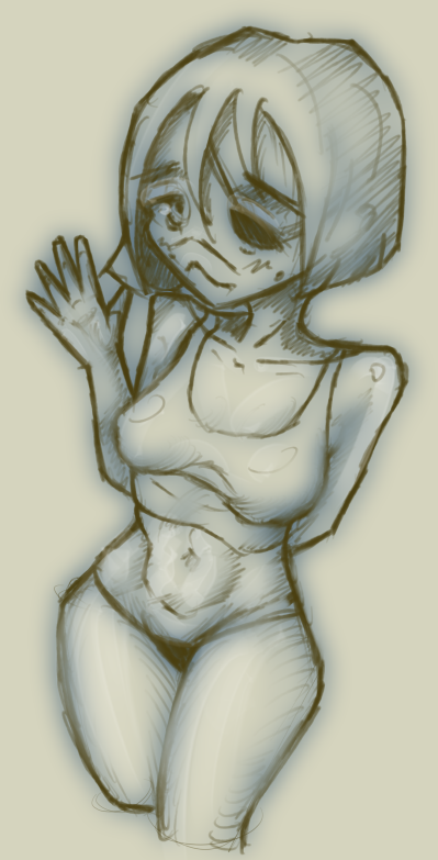 >>906785 Вот эта. Вообще, у нее украли пресс, т.е. у нее сжатие в районе живота и справа, и слева, сестра шакала, не иначе. Пока ноги правил, понял, что хз че она там вообще ими делает и я бы нарисовал по-другому. Ну и одна грудь растет из ключицы, но это мелочи, по сравнению с бедрами, в полтора раза меньшими, чем икры.