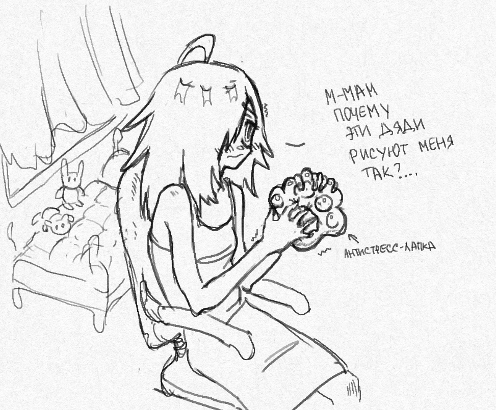 В-третьих, если прям не получается доводить до конца рисунки, попробуй намазать скетч чем-нибудь красивым хотя бы для развлечения. Например научись одни и те же красивые глаза хуярить, или смешной нос.