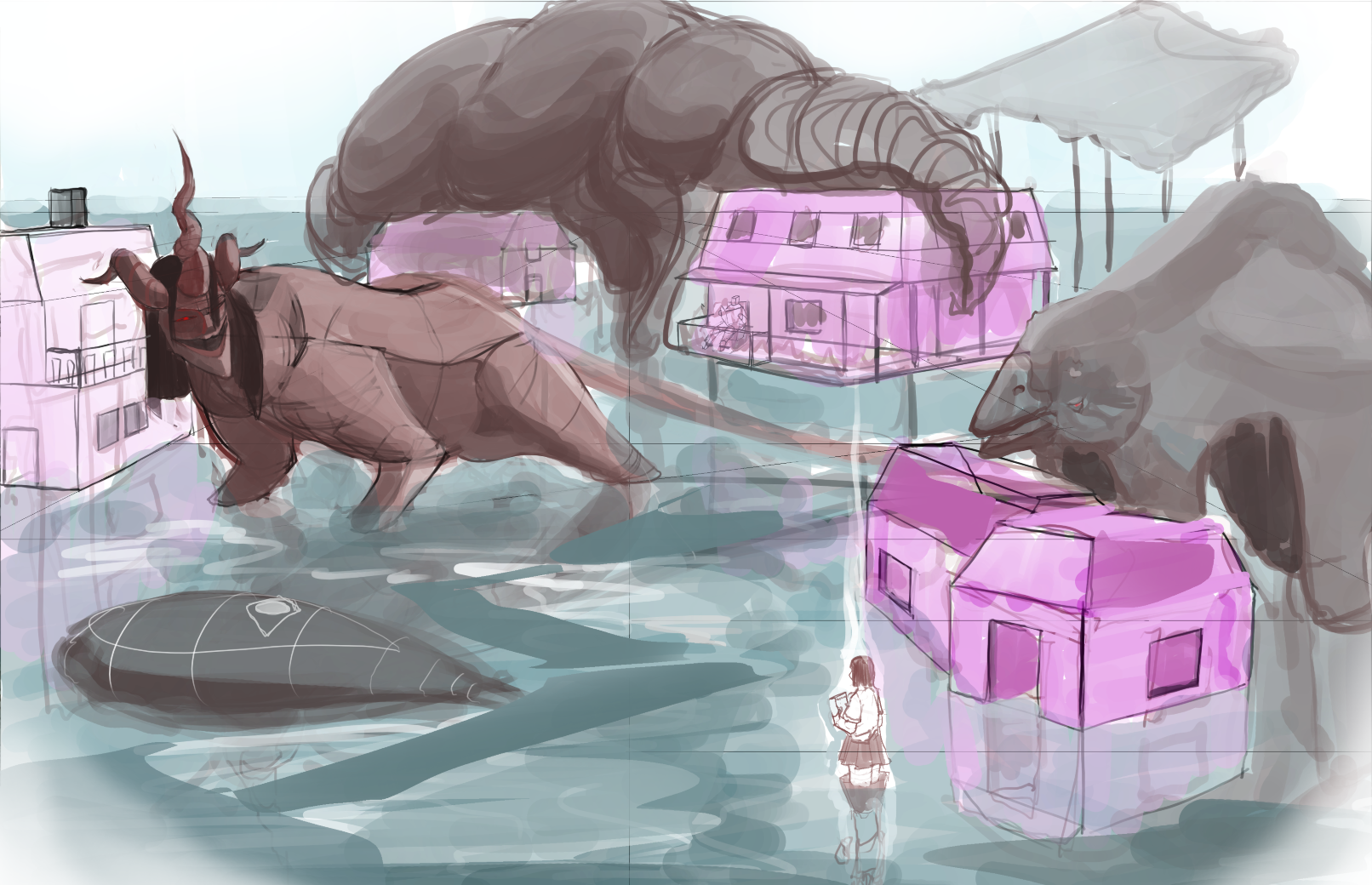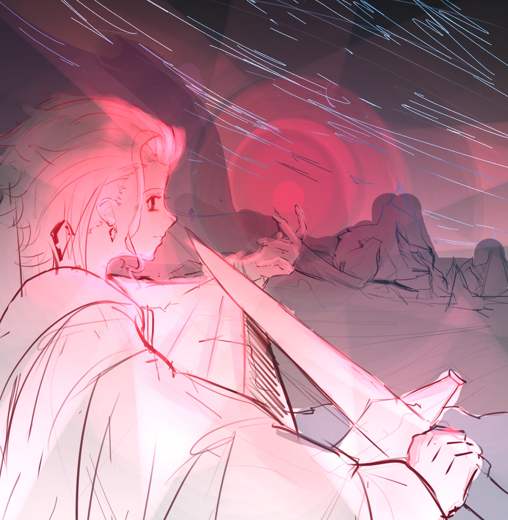 Как же сложно стадить цвета и фоны, просто ппц. Типа столько оттенков и надо из тысячи подобрать правильный, и при этом типа красный не красный, а серый, а красным он становится из-за цветов которые рядом с ними. Ваще ппц. А еще надо текстуры делать всякие. Оч сложно. Вот бы с преподом заниматься. Еще я всегда делаю цвета слишком бледные какие-то, пик 1. А потом через другой слой доделываю норм оттенок (пик 2), всегда лучше выглядит когда я затемняю и делаю контрастнее. А сразу так рисовать не могу. Наверное это плохо но мне если честно такой пайп лайн нравится больше, чем когда сразу темные и насыщенне цвета ебашишь а потом сложно исправить. Но я не очень понимаю магию что именно эти слои делают что получается настолько лучше, это режим color burn, он как-то по-особенному затемняет.
