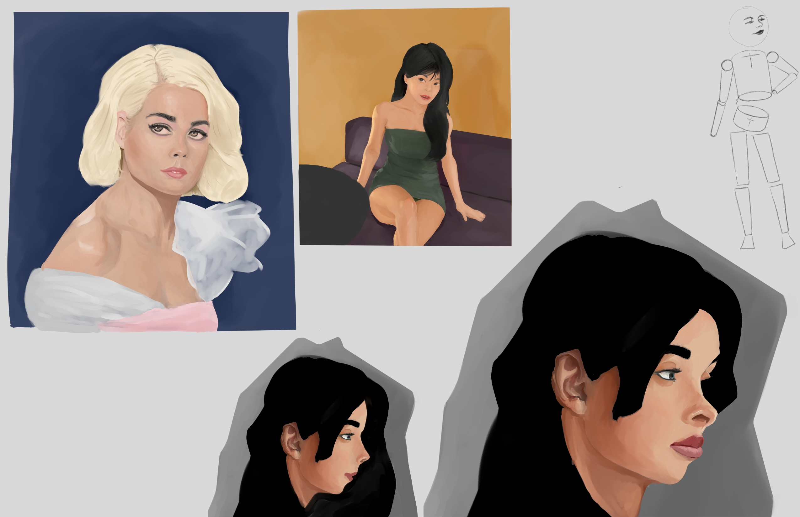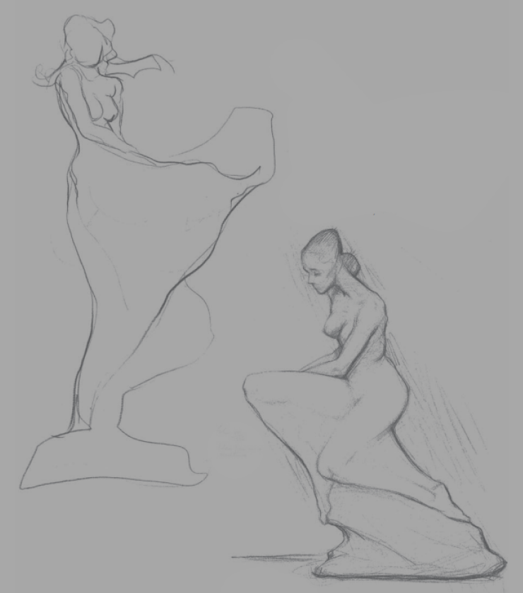Во-первых выбери что-нибудь попроще для законченной работы. Например портрет, либо тело выше колена в положении стоя. Что-то что нравится тебе, но не "целиковый" человек в ракурсе.