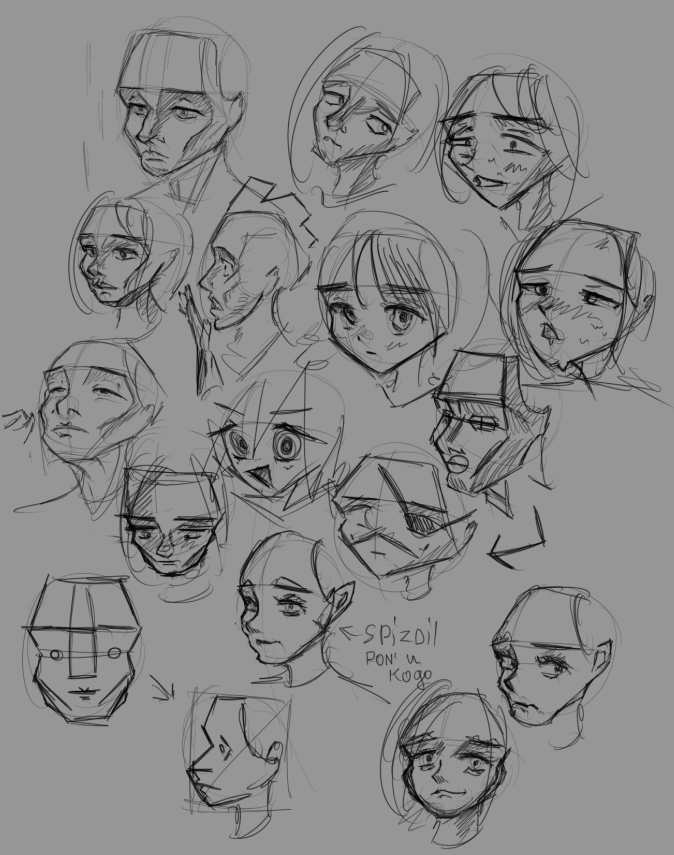 >>906684 Ты вроде не совсем верно пользуешься методом Лумиса. Линия посередине сферы которая показывает наклон головы это линия бровей и верхняя линия ушей, а у тебя это линия верхней части глаз. Нижняя часть ушей обычно на уровне носа. И если голова поднята то уши будут ниже получается, ну зависит от уровня наблюдателя еще. У тебя на рисунки высоковато ухо по моему. Мне черепа оч помогли понять как рисовать. А еще забыл добавить, рот обычно в 1/3 между носом и подбородком Но я сам ток учусь и тоже часто ошибаюсь, но вроде как могу подсказал!