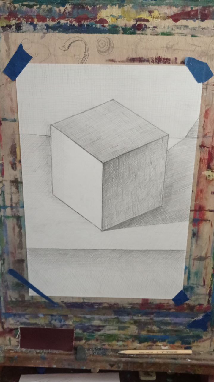 > а у прямоугольников ты смотришь на них сверху. Кубы снизу нужны чтобы правильно пропорции начертить в перспективе. Может ты не понял что я хотел сделать. Это колёса для будущей машины, в эти квадраты нужно будет вписать круг. У мкеня вопрос, правильно ли я начал отмерять линию в самом низу или допустил ошибку?