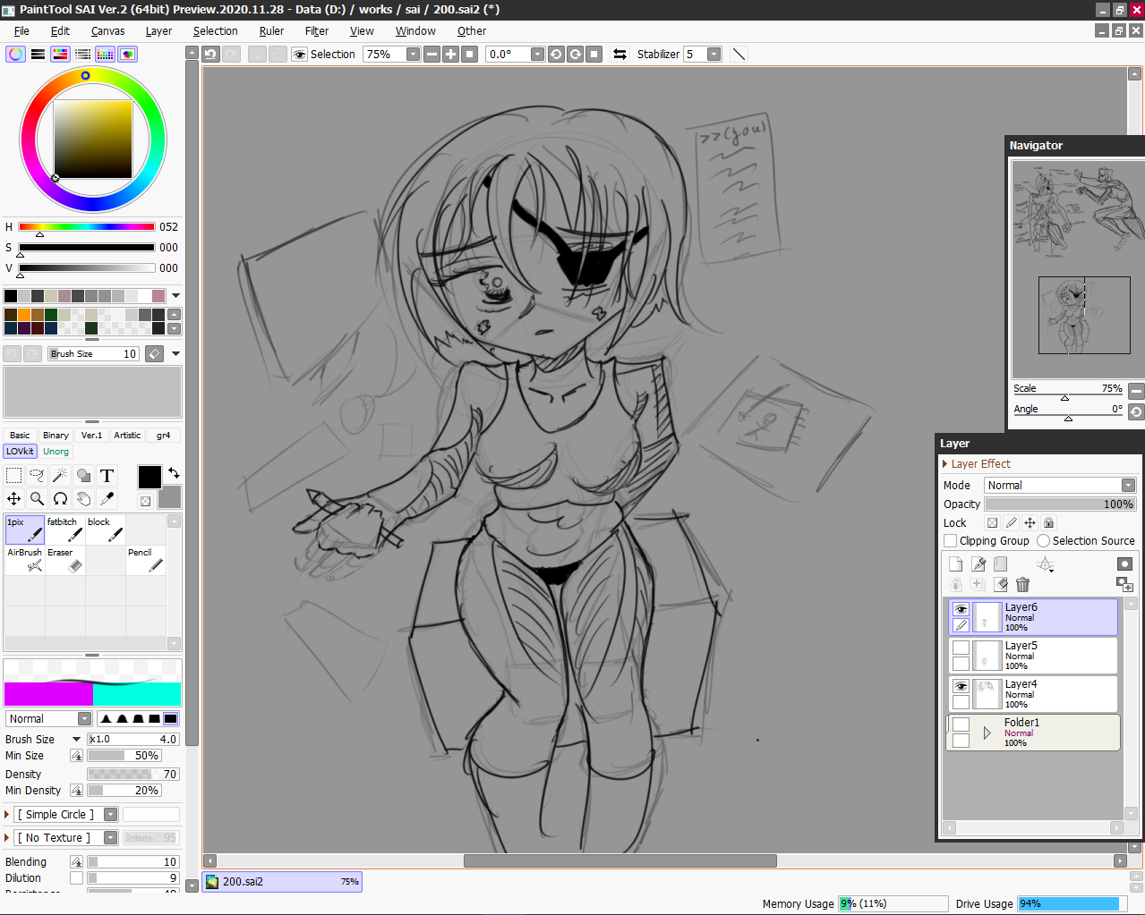Шел одинмиллиончетвертый год вката. Я наконец понял что скетч в саи можно подкрашивать клипмаской. И наконец нашел ебучую кнопочку маски которой этот лайн можно аккуратно недеструктивно подтирать.