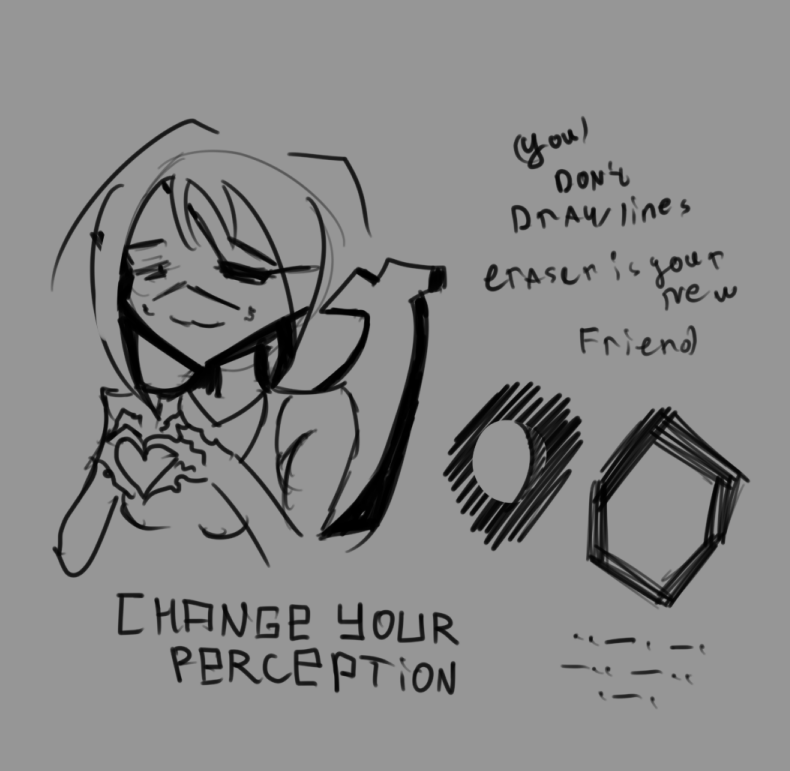 а вообще надо делать быстрые наброски того что хочешь нарисовать и в процессе рисования всегда стирать большую часть и целиком ее перерисовывать, пока не получится то, что надо