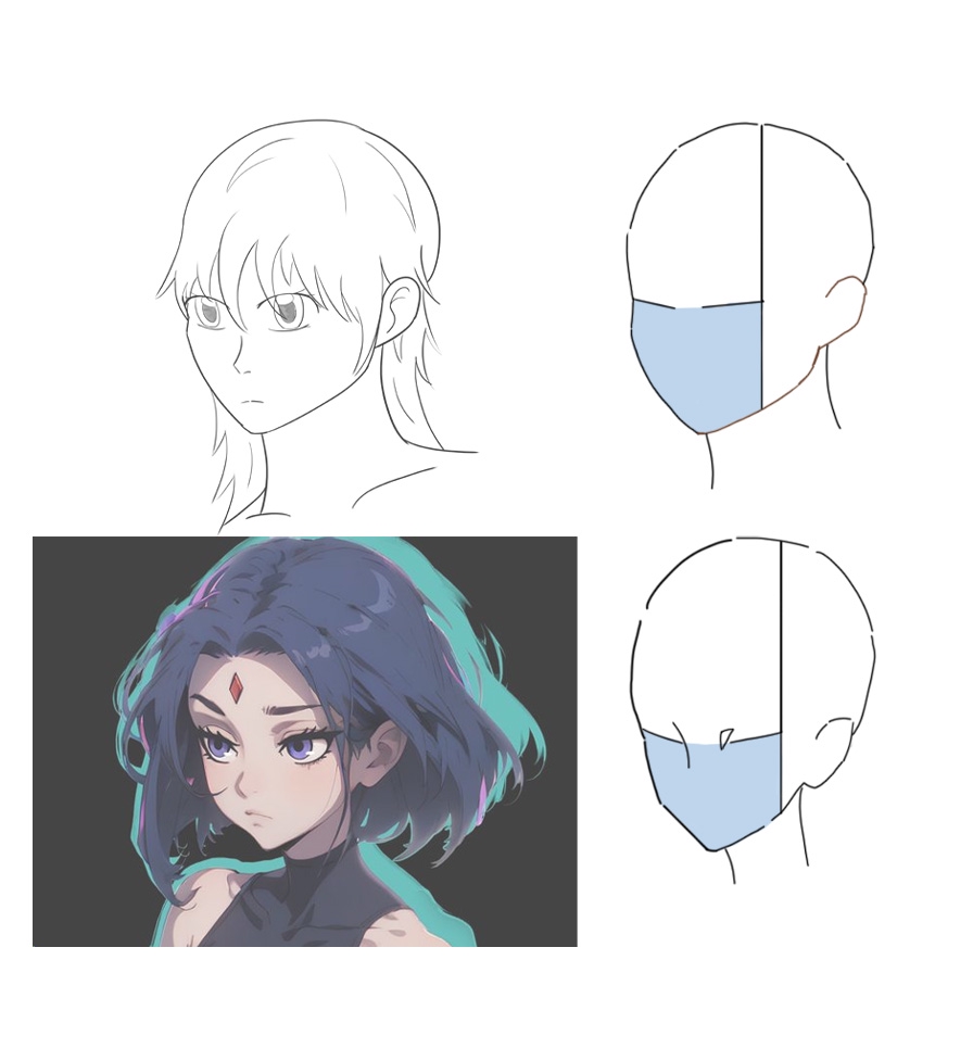 Что на мой взгляд можно исправить быстро и улучшить вид это волосы - у тебя они "без объёма" линия черепа и линия волос это одна линия (из за этого голова маленькой кажется) Так что хуярь больше объёма волосам (тем более в аниме стилистике) Япопытался показать, мне кажется это довольно просто и сильно красивше выглядит сразу Но я так то особо хуевый, так что если грамотные аноны поправят лучше их слушай
