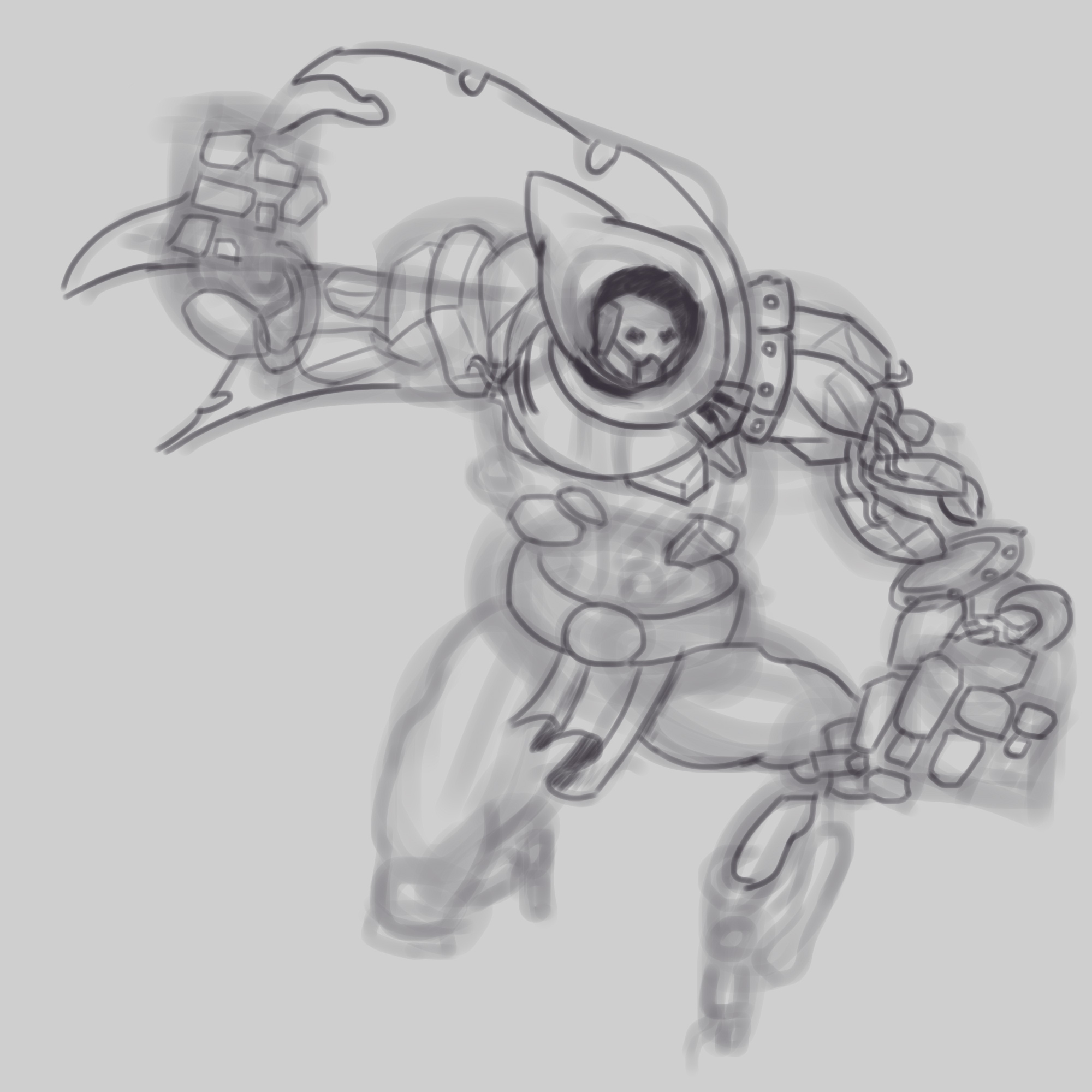 >>918495 Есть ощущение что он падает, я бы правую ногу ещё дальше завёл ну и левое бедро наверно поменьше бы сделал, выглядит большим по сравнению с правым