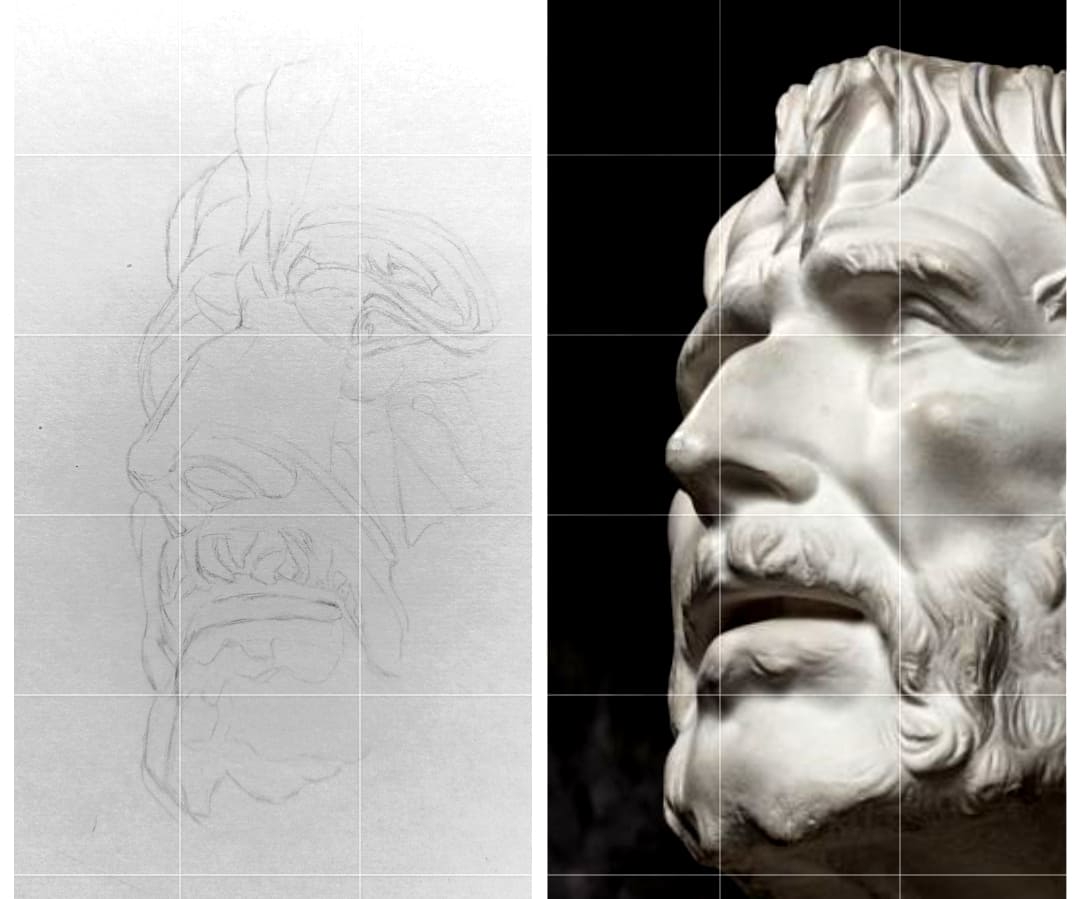 >>920048 >>920049 >>920050 Я в конце сеанса просто смотрю насколько кривуля попадает в реф через приложуху для коллажей. Не хотел платить за быструю доставку вот и рисую фрагменты черепков вечность.