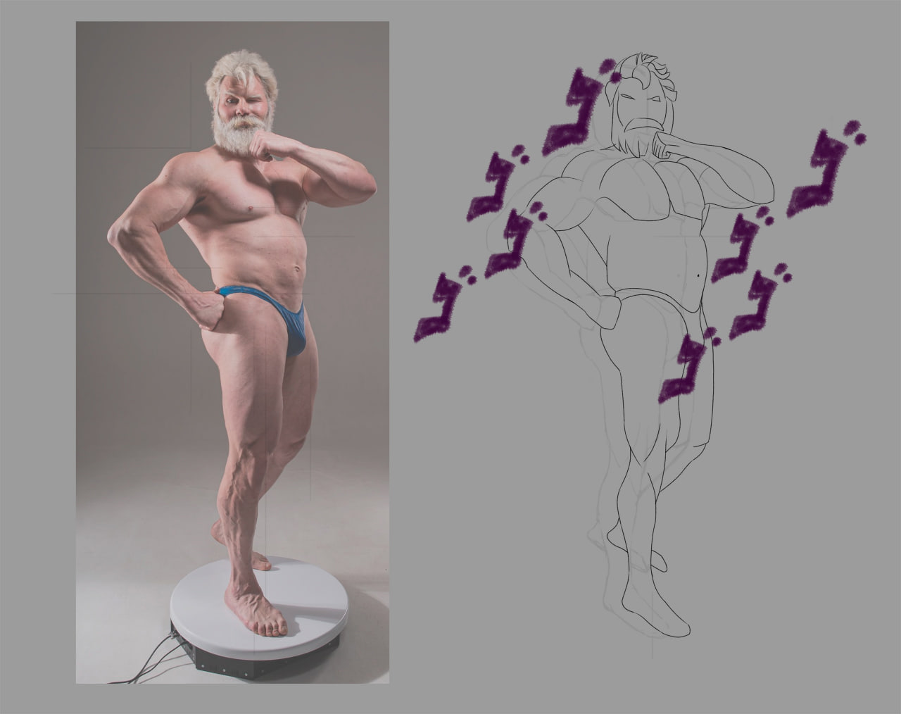 >>918745 Эта штука предполагает, что ты уже рисуешь от силуэта через гестуры и можешь в конструкцию. Он предлагает заполнить получившийся силуэт упрощённой конструкцией мышц.