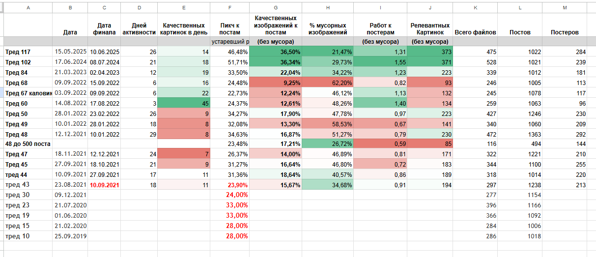 >>921893 "Качественных" "релевантных" это все что не нерелейтед. То что попало в коллаж. Ну то есть когда все боевые картиночки и рефы вычистишь. По постерам очень условная цифра. В среднем аноны постят с одного двух айпи. За каждым аноном тянется пара шлейфов на десят лет назад (мобильные айпи меняются не так часто как многие думают ). Есть чуваки с зон с нестабильным интернетом, там да, иногда бывает пиздец. Но по треду видно что это скорее редкость. Так-что цифру я для себя делю примерно на 3, а в табличке просто оставил как есть. В общем это просто табличка которую я пять лет назад составил ради интереса когда все начали ныть что "нуботред умер". По /па в целом тоже проводил изыскания. Сопоставлял срачи, вайпы и падение постинга. Можно сказать что постинг падает по всему сайту т.к. мы переживаем расцвет цензуры и закат имиджборд. По па с каждым глобальным срачем постинг тотально падает. Серьезно упал когда доска вайпалась нейрошизом, а анимутред куриной лапкой. Это можно назвать закат старого /па. Там реально нормальный актив, потом резко вопли анонов мол "съеби уже отсюда", а потом хуякс и следующий пост только через месяц. А след перекат через год.