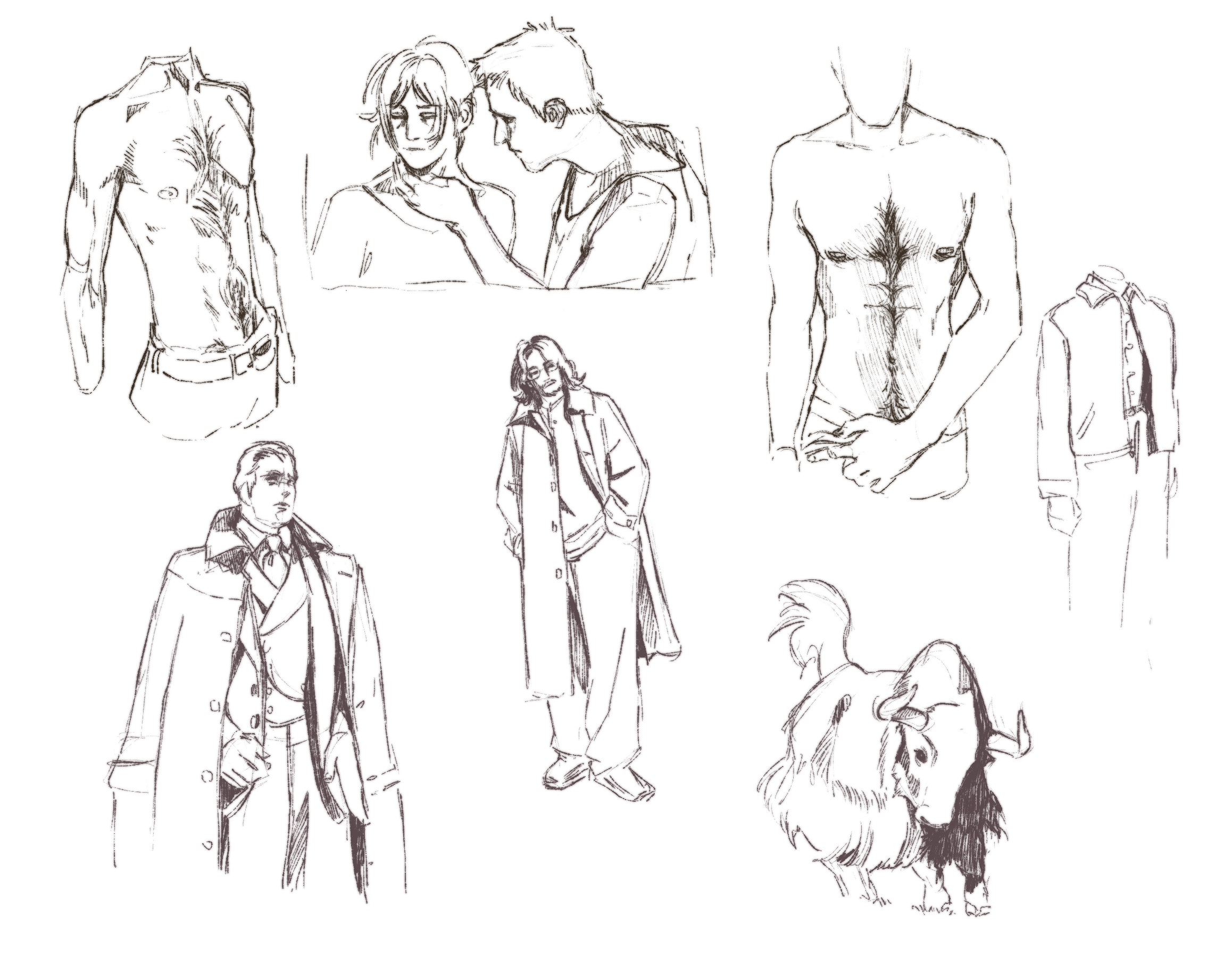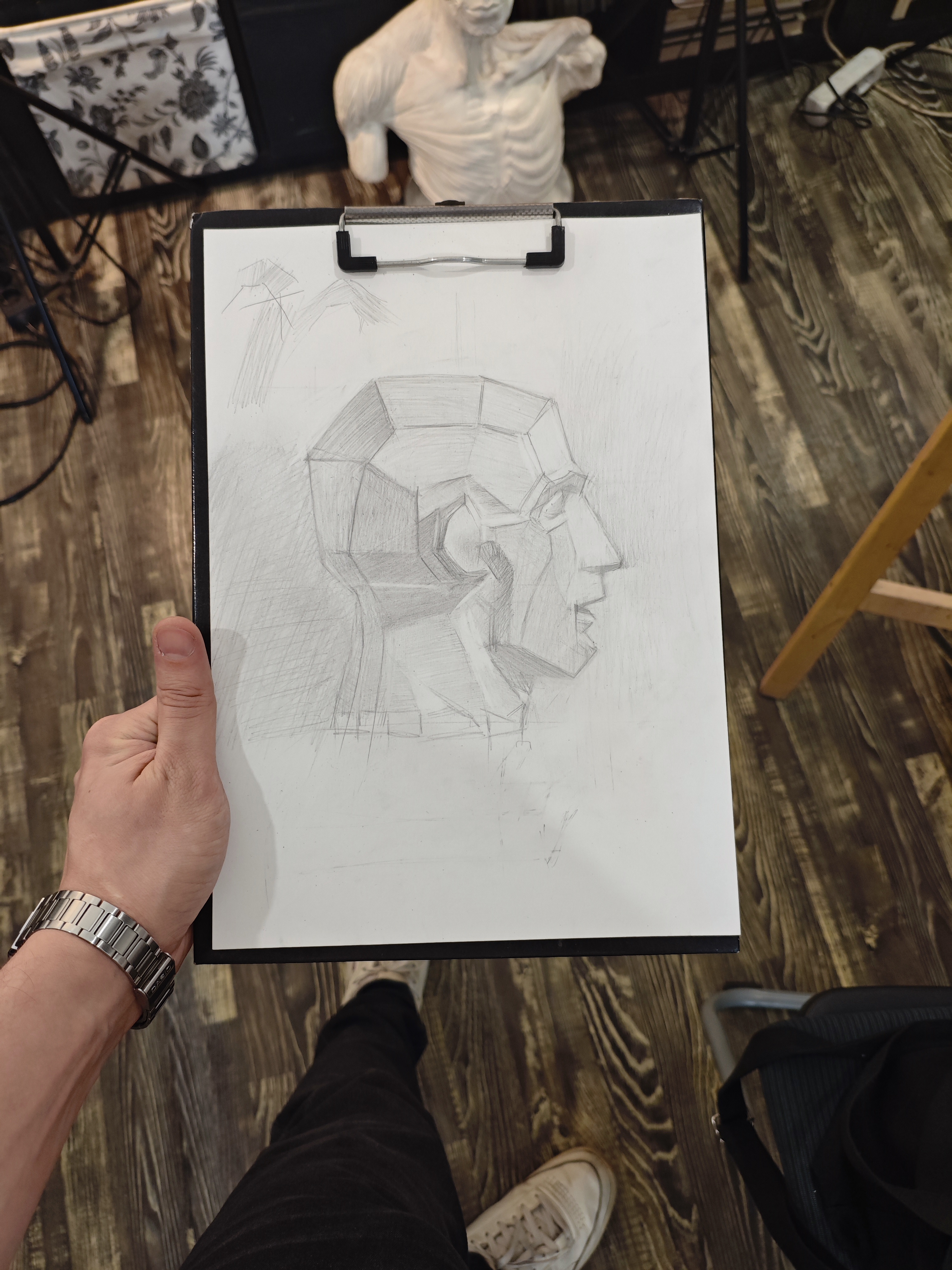 >>922213 Спасибо большое за фидбек, надо постадить еще более вдумчиво портреты и части лица. Нос пытался определенной формы сделать, хз как объяснить, длинный вниз, но не вперед. Надо найти какого-нибудь актера с таким носом и рисовать его а не выдумывать чето.. По твоему рисунку понел почему подбородок такой массивный был надо было сузить слева. А я думал что потому что тени нет.. У меня такая финал очка получилась не буду мучить уже, щас кажется затылок еще слишком длинный получился мда кринж.. Ну это кусочек арта. В профиль вообще тяжело идет. гриндить надо ггриндить