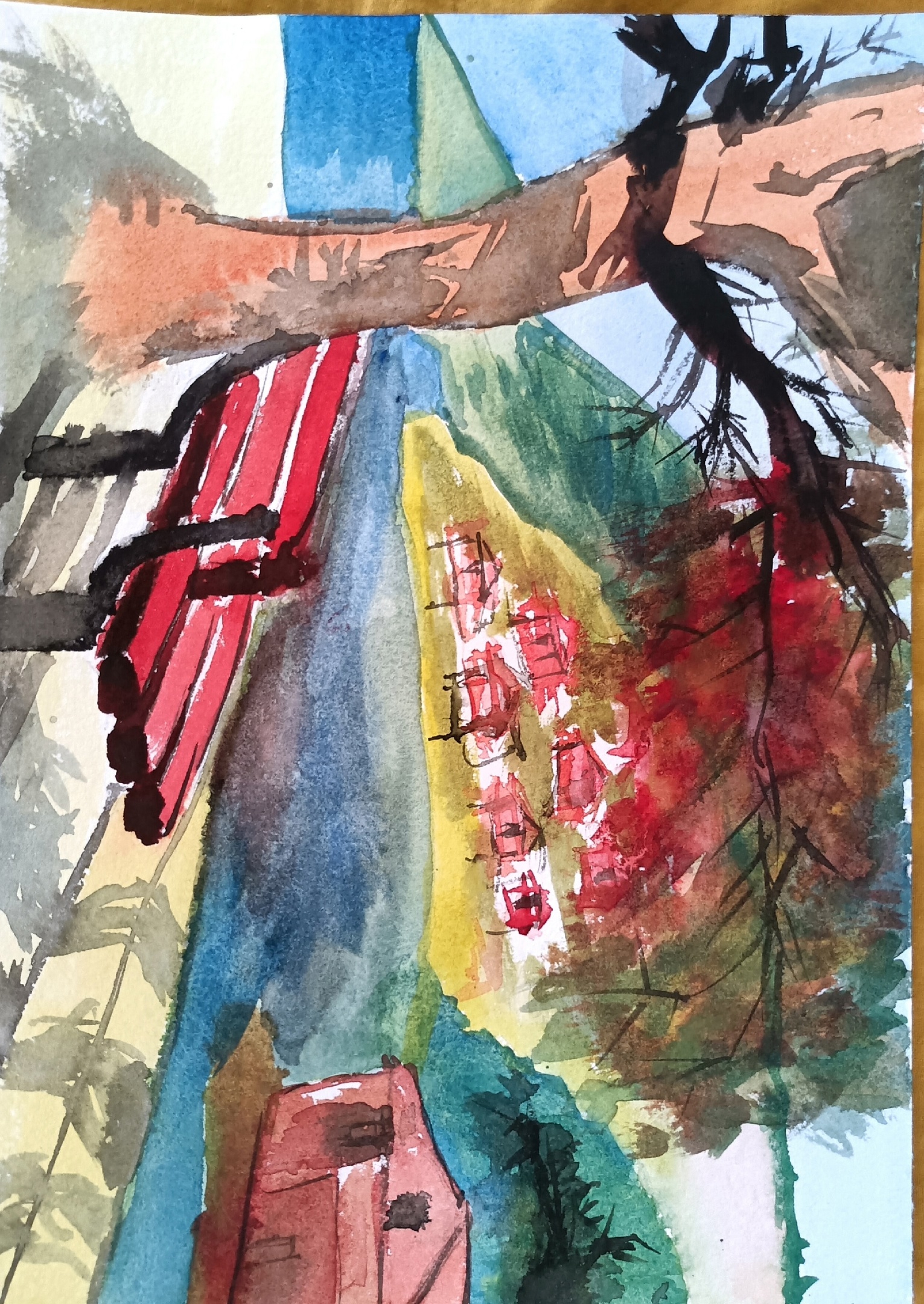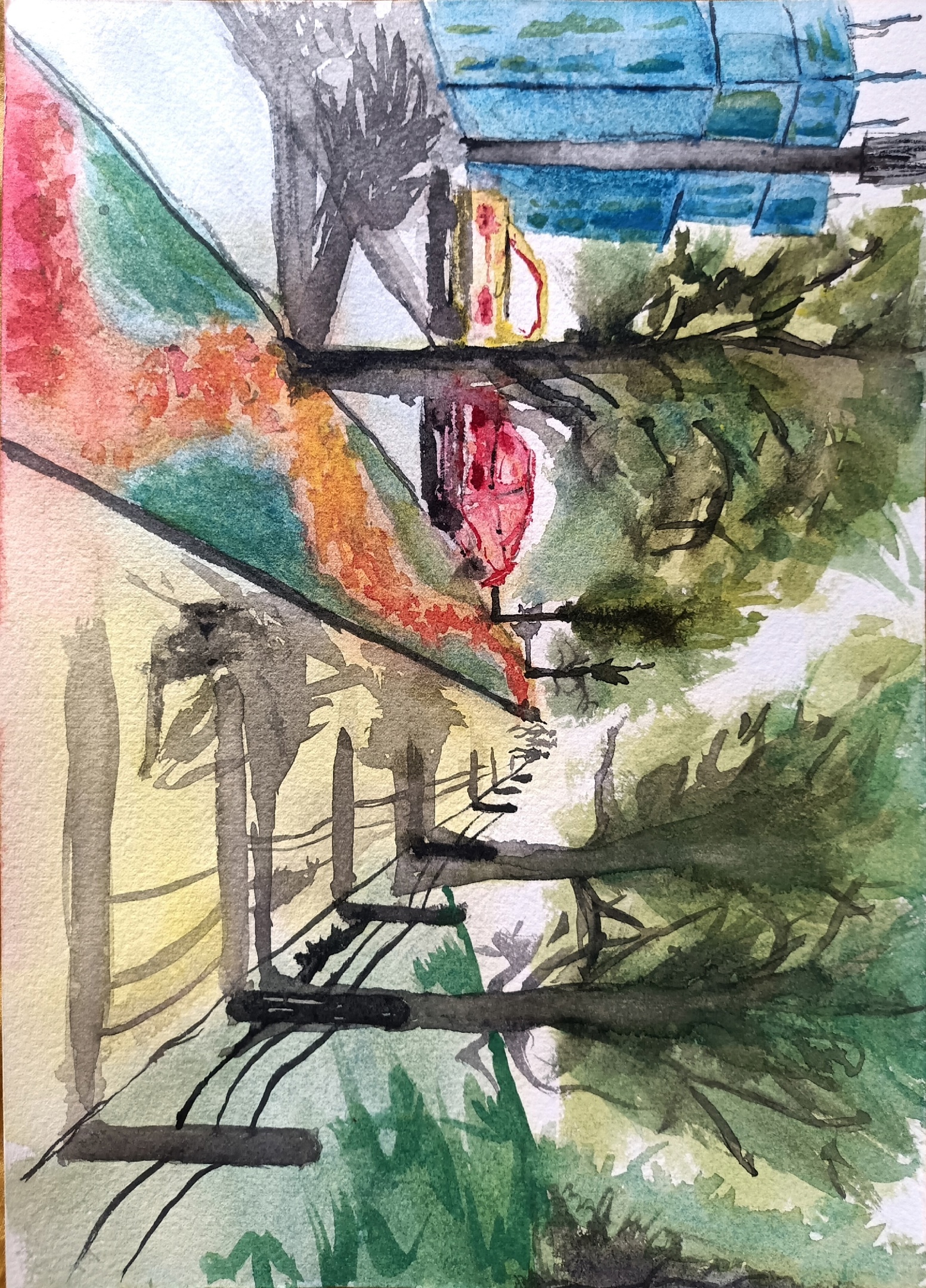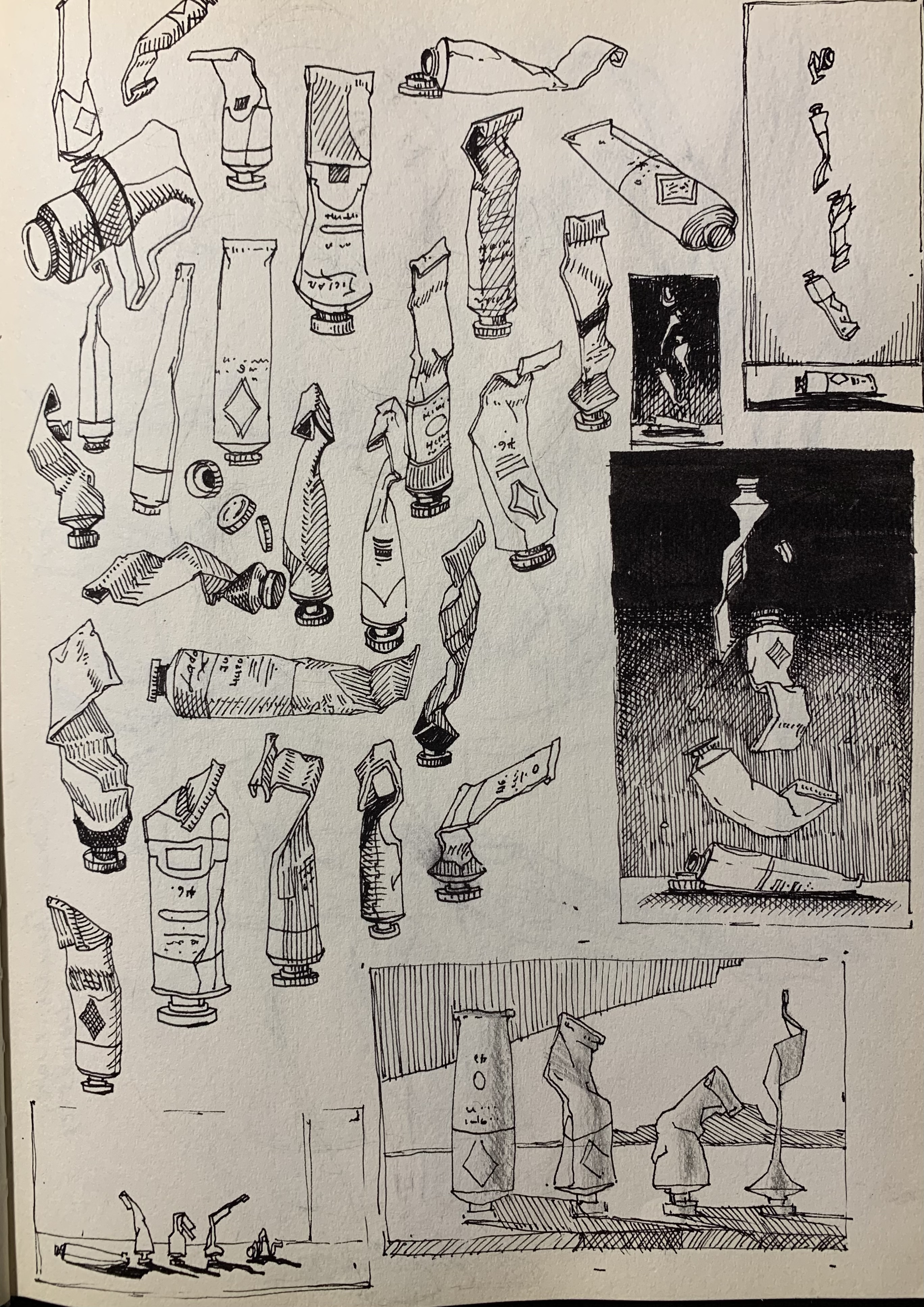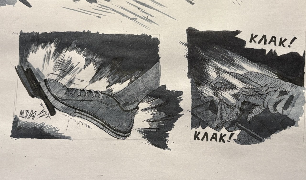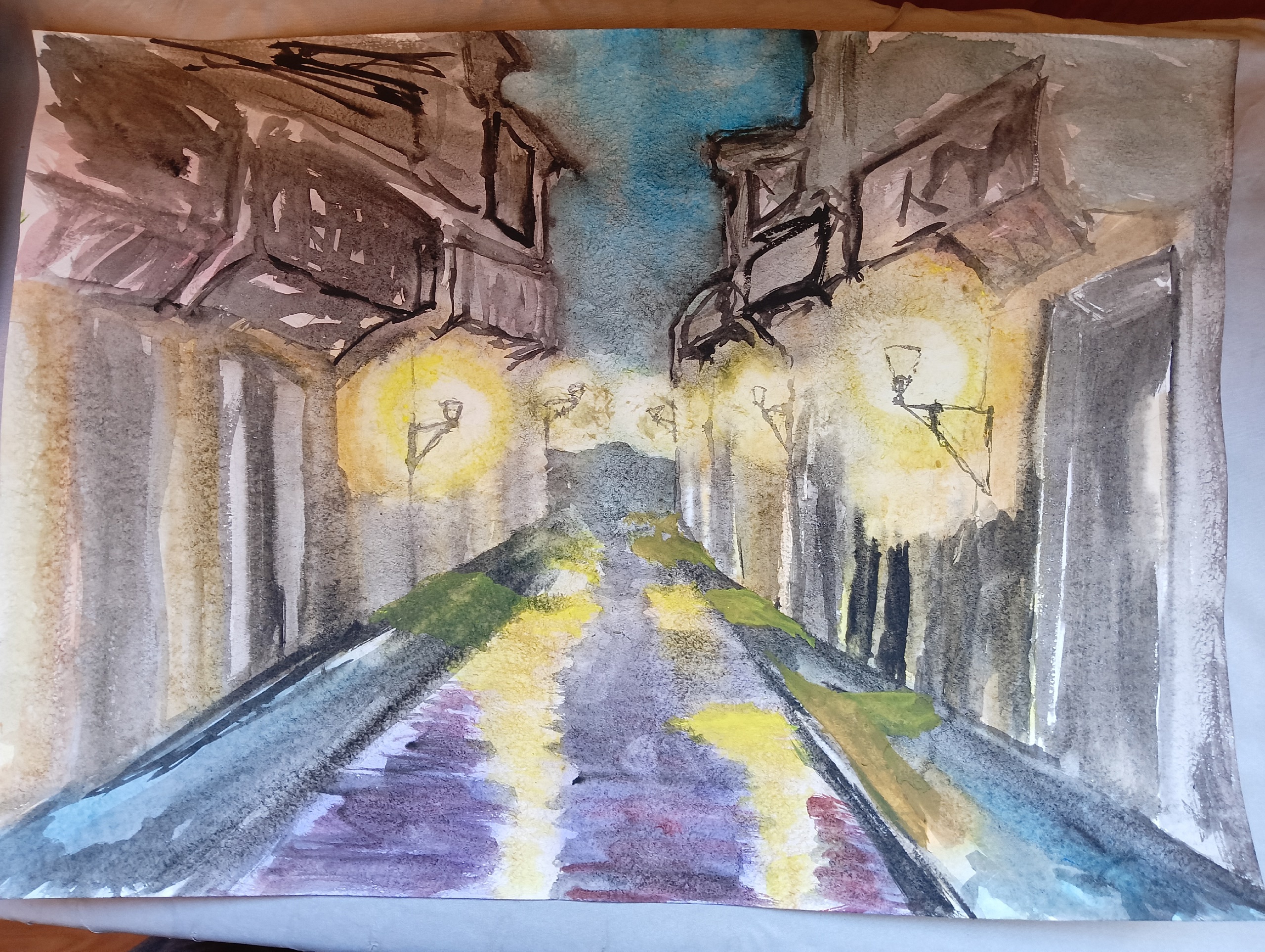 >>922114 > но как делать размытие на бумаге? Важнее знать чем их делать на бумаге. Я могу такое сделать и акварелью и гуашью и маслом и маркерами. Если знаешь азы медиума, это не сложная техника. Важнее изначально делать более рваный контур. По чёрному, обводящему контору ты прозрачной краской уже размазы краски не сделаешь. нужен будет кроющий медиум. Но крощим медиумом не рисуют пооверх чернилных линий. Я бы лично нечто подобное наверное акварельш бы делал. Акварелью легко делать штриховку которую можно по форме пустить. Например залить асфальт средним серым а поверх более тёмным серым сделать штриховку. А ещё поверх или на первом слое, ещё и штриховку тушью можно добавить.