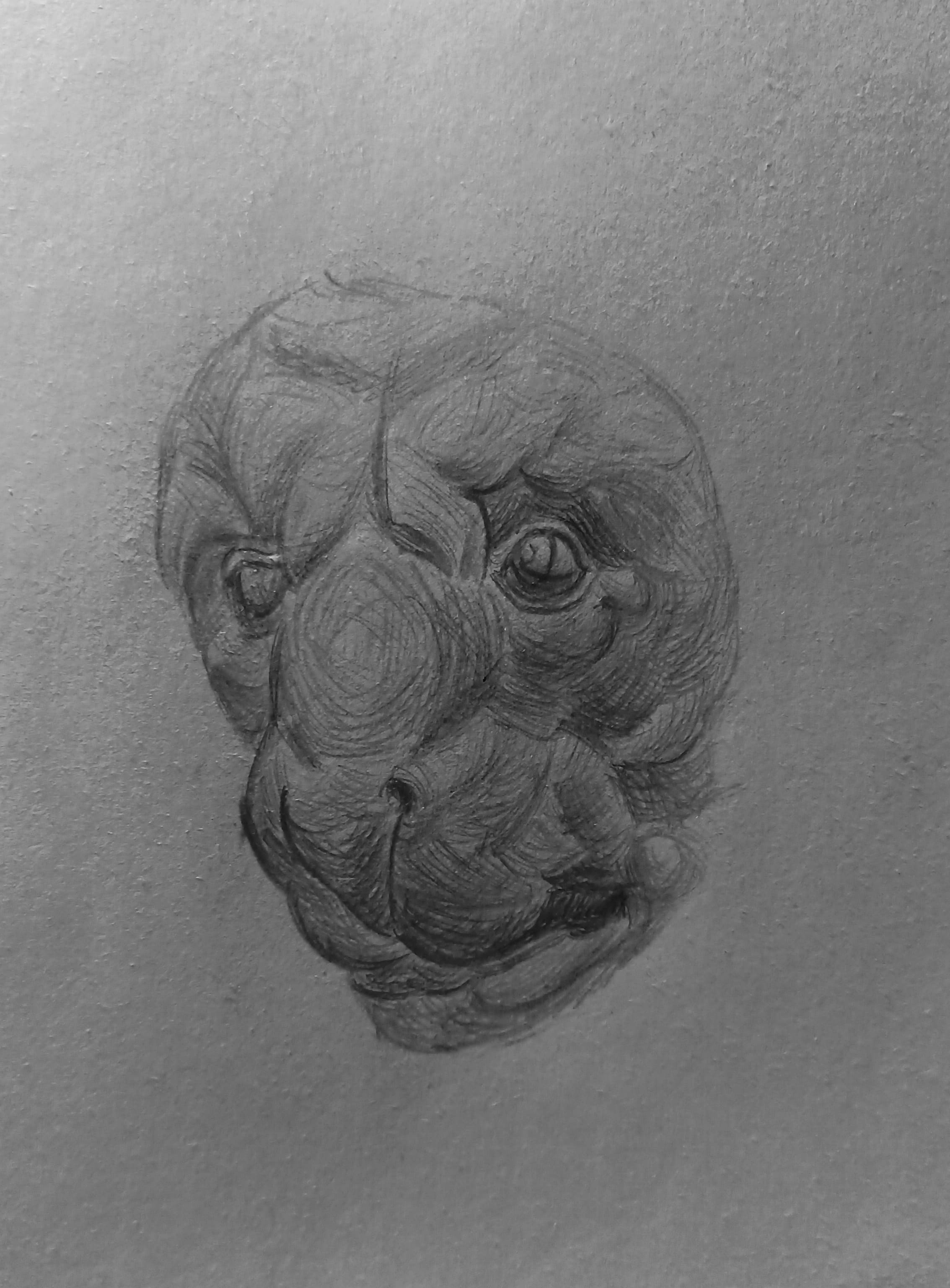Опять попытался поштриховать и в итоге замазюкал все сверху что-бы не видеть этот ужас. Лучше пойду упражнения по штриху повыполняю, это будет продуктивней чем намазюкивать дальше...