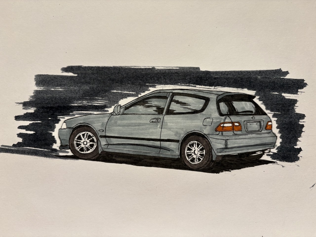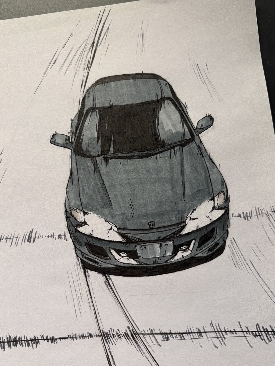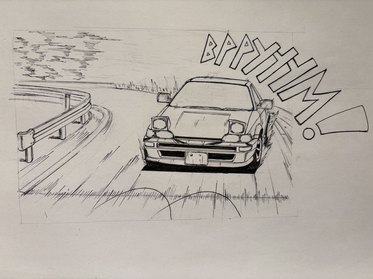 >>923307 Неплохой кадр для манги, ракурс просто такой, что крыша бы уже мешала зрителю. Надо или ее нарисовать чуть или переделать в кабриолет. Наверно. Ну и в центре кадра как бы ничего нет. Можно добавить маленькую тачку впереди с красными габаритами. Руки на руле расслабленные, еле держатся, надо напрячь, там же скорость и адреналин.