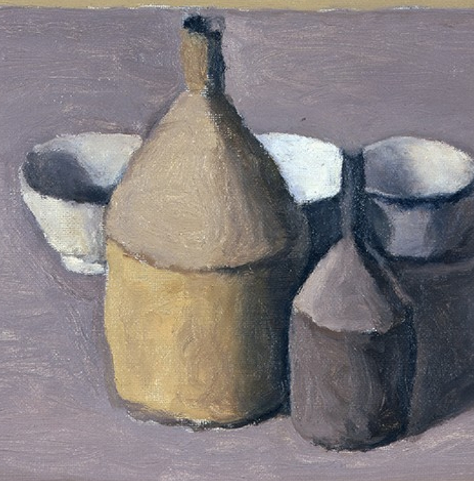 Джорджо Моранди- итальянский живописец и график, наследник Джотто и Поля Сезанна. У Джотто он научился придавать предметам на холсте почти скульптурную весомость, у Сезанна — видеть мир как совокупность геометрических форм и цветовых плоскостей. Но применил он эти уроки к самым скромным объектам: старым бутылкам, пыльным вазам, чашкам и коробкам. Предметы на его картинах словно излучают мягкий внутренний свет. Их границы растворяются, они парят в световоздушной среде, создавая эффект нематериальной, почти сакральной реальности. Его полотна это полностью осознанные моменты, сведенные до теплых, приглушенных оттенков. Моранди был алхимиком, превращавшим глиняные горшки в философские категории. Его искусство — это визуальная поэзия, метафора вечности и тишины. Каждая работа — как визуальное хайку, где простота не означает отсутствие сложности, а является ее высшей формой. В его мире тишина становится музыкой, а пустота — полнотой.