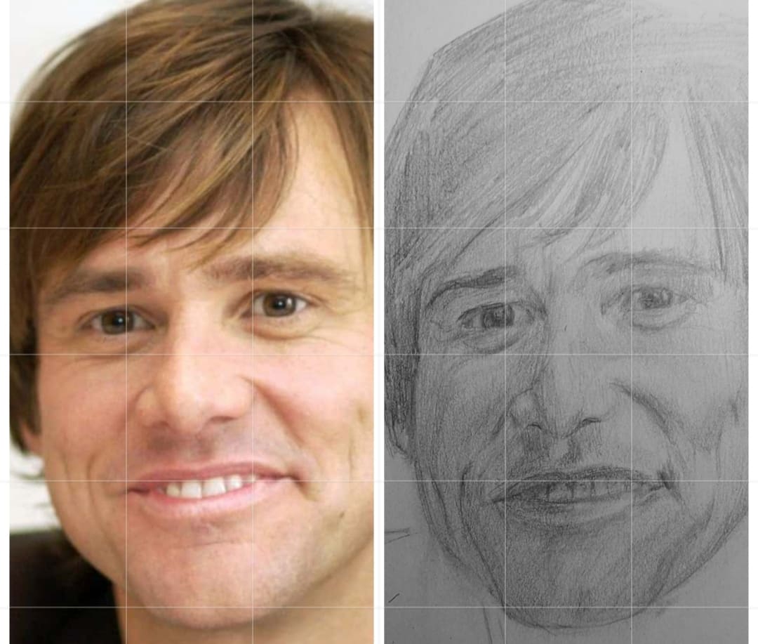 Надо не просто примерно промежутки визированием, а еще и ключевые точки черепа отвесами перепроверять. Слишком слаб у меня глазомер и то что нос длинее я начинаю понимать только когда уже начинаю класть штрих. Ну хоть штрих тренирую по форме