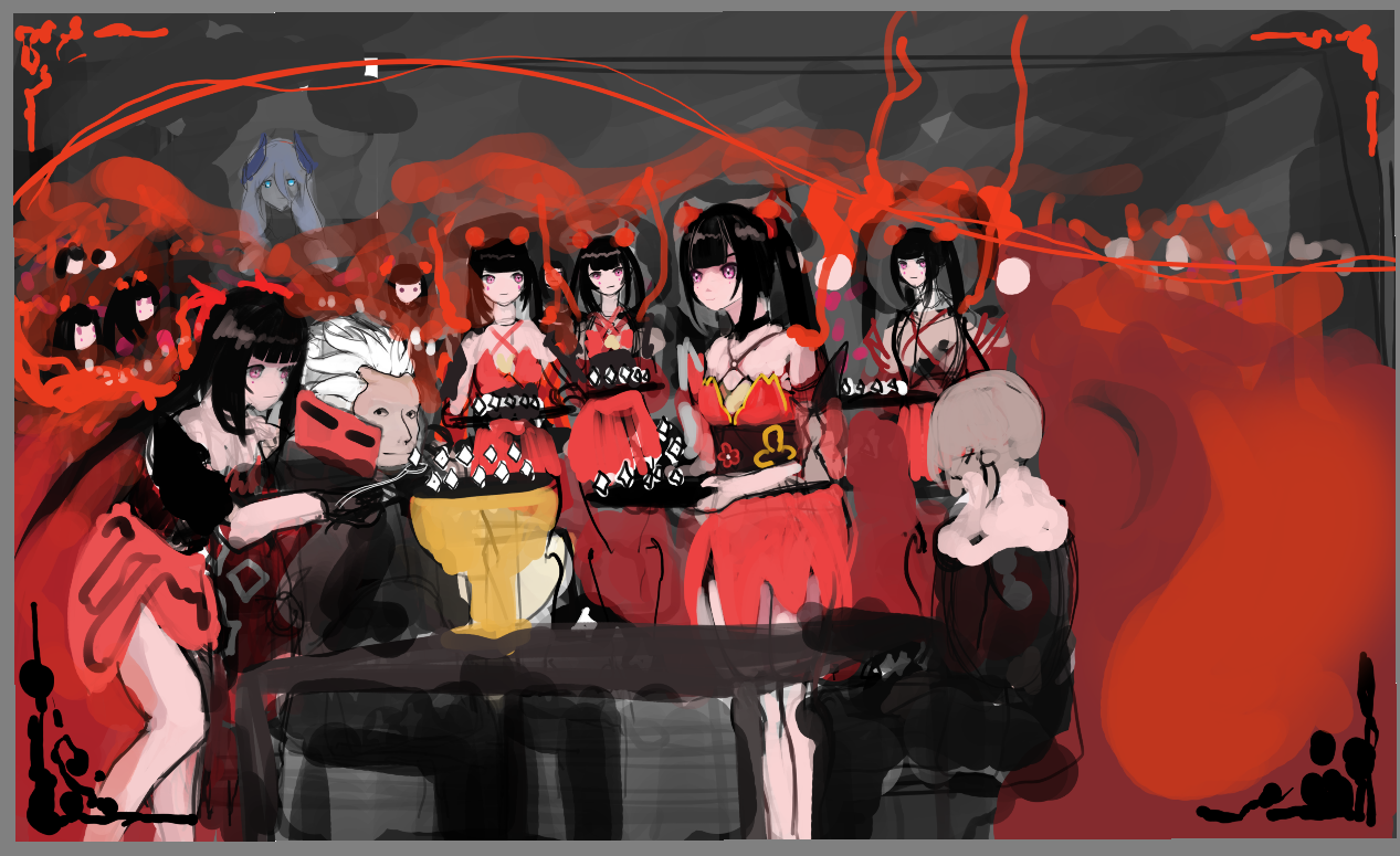 >>925300 Ну, я заметил некую черноволосую девочку с красными глазами в предыдущих работах. Тут вроде тоже она. Но в целом не видно большой любви/привязанности к какому-то персонажу.