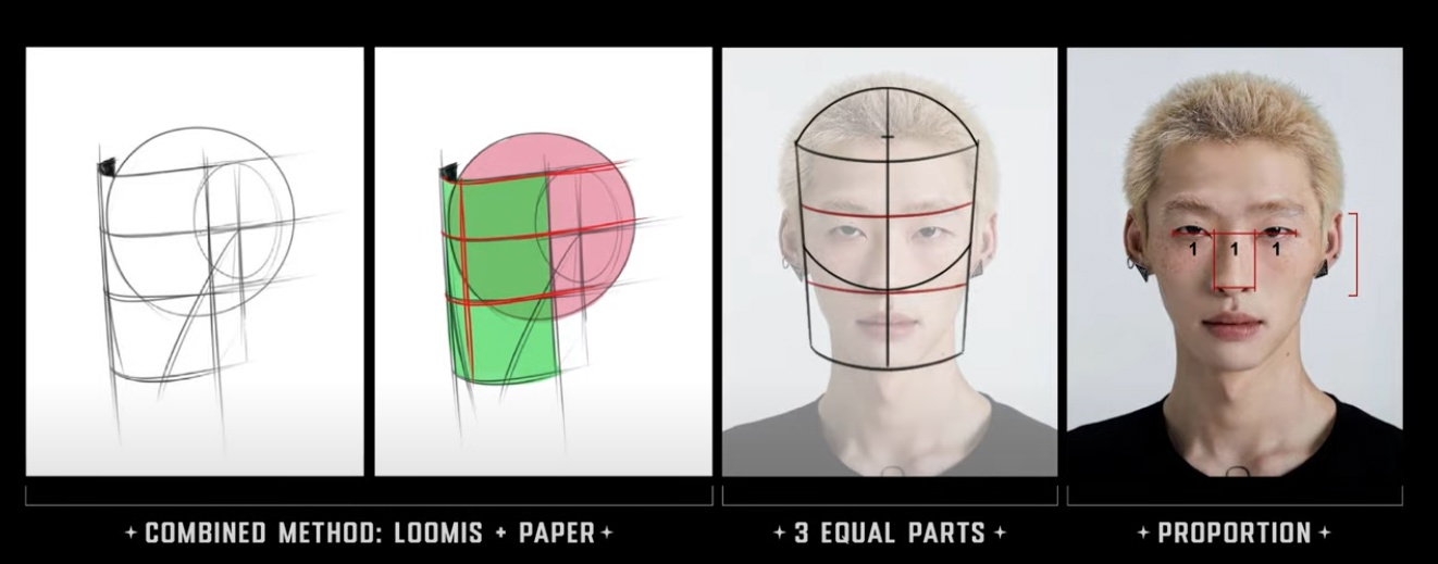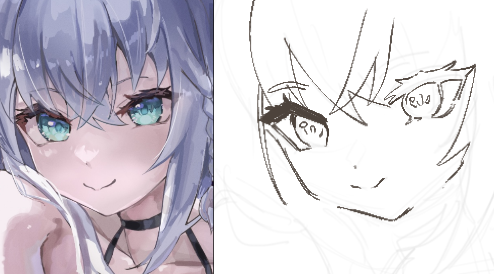 >>923550 Не знаю, полезна ли обводка, но по срисовке могу дать пару советов (которым сам не следую). Сперва надо прикинуть, как разместить рисунок в листе, отметить верх и низ, я лично сразу на глаз хуярю силуэт, поэтому у меня всегда плавают пропорции. Вообще пропорции это для срисовки наверное самое важное, поэтому затем измерь, сколько раз ширина оригинала умещается в длину, если это маняме тян, то сколько раз голова умещается в теле, погугли пропорции и визирование. Еще можно смотреть, где именно какая-то часть лица/тела находится относительно других (левее, правее, ниже, выше). В аниме лице хорошо бы рисовать центральную ось и линию глаз, чтобы они так сильно не плавали, обрати внимание на размер расстояния между глазами. Если рисуешь в дидже, то можно поставить реф рядом с холстом в масштабе 1:1, так будет попроще. Простигосподи Торопыгин в видосах про рисование куба рассказывает всякие такие приемы, можешь тоже глянуть.