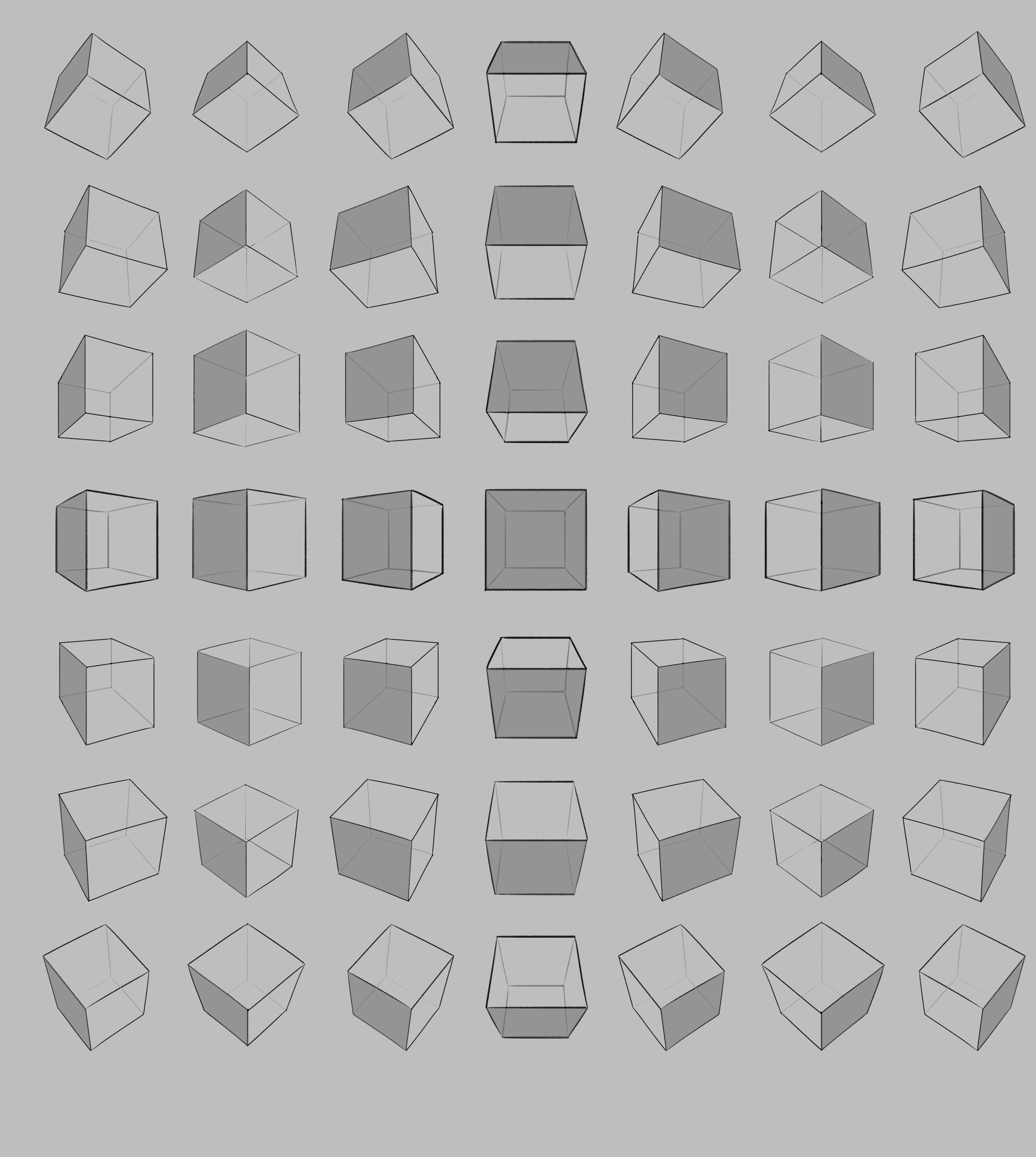 Подумал что строить головы трудно и я совсем не понимаю как вертеть кубы, а еще как их рисовать и вот это все. Попытался учится по уму нежели тупа рисовать куб за кубом хуй пойми зачем.