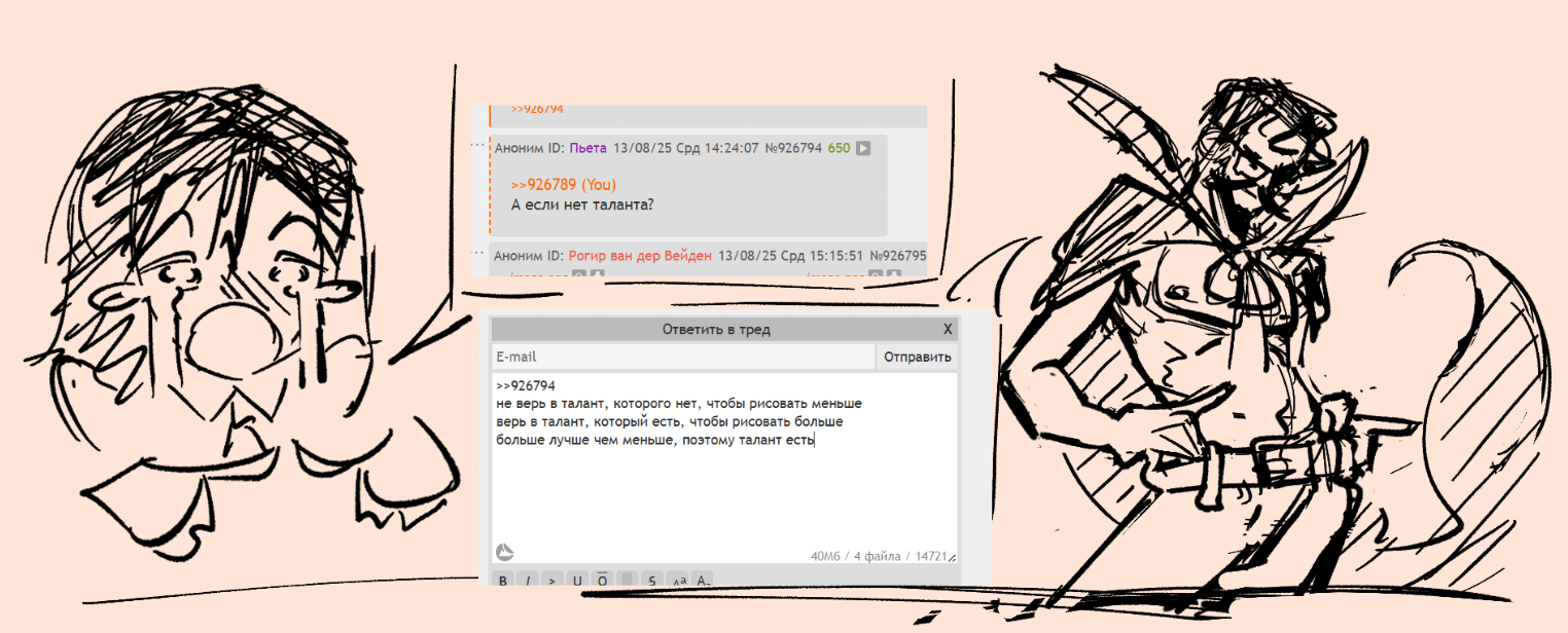 помню как мне про мои рисунки наперебой говорили в этом же самом треде, что я не стараюсь и не хочу стараться, абы как рисую лишь бы отделаться, что я троллю тред, но эти рисунки были моей настоящей верхней планкой, которую я еле достигал