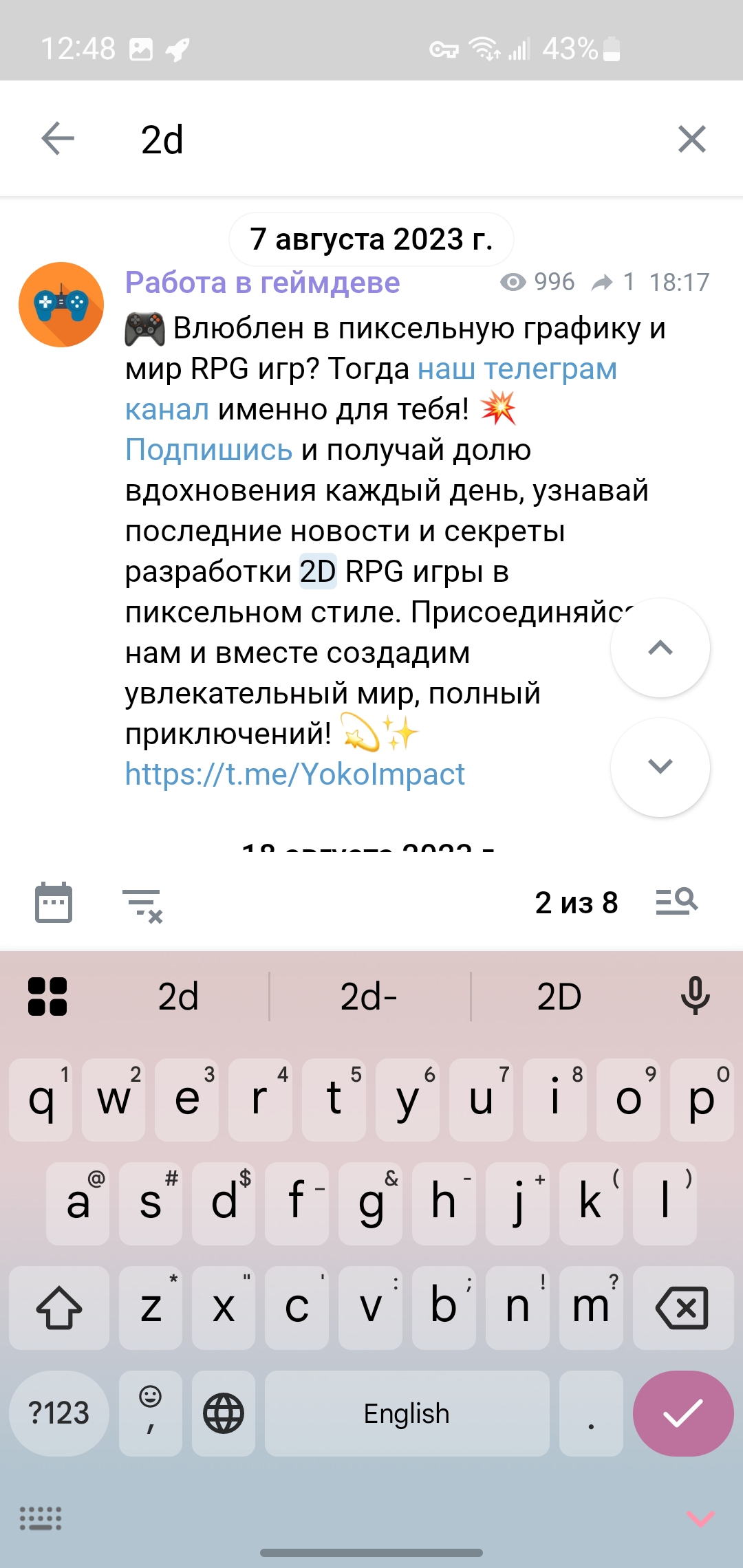 В августе заметил большое количество вакансий именно на 2д художника в ленте в телеге. Если кто отчаялся искать работу но все еще готов то пошерстите гпуппы, там поразительно много вакансий.