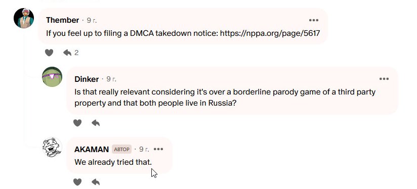 >>929965 >>929968 >>929969 Скорее всего просто шаг на встречу визе и матер калу, если итч не может им сопротивляться, то габен им просто яхту не построит, если будут борзеть, на него давят, и он сделал какой-то формальный шаг, чтобы платёжные системы могли отчитаться "что мы победили стим".