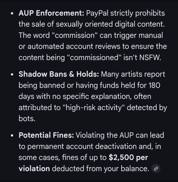 >>941682 Вот чат (удали пробелы): https://t . me/+qChisKCgJEBjMWQy - там про актуальные способы оплаты. Отдельно отмечу юзера @iDiklonius, можно поискать по его постам или спросить в личку, что он сейчас использует. Информативный чел. Для приёма платежей с пейпала в последнее время был лаватоп, изистафф , девиантарт (вывод в крипту) и частные посредники с палкой, отзывы про них там тоже есть.