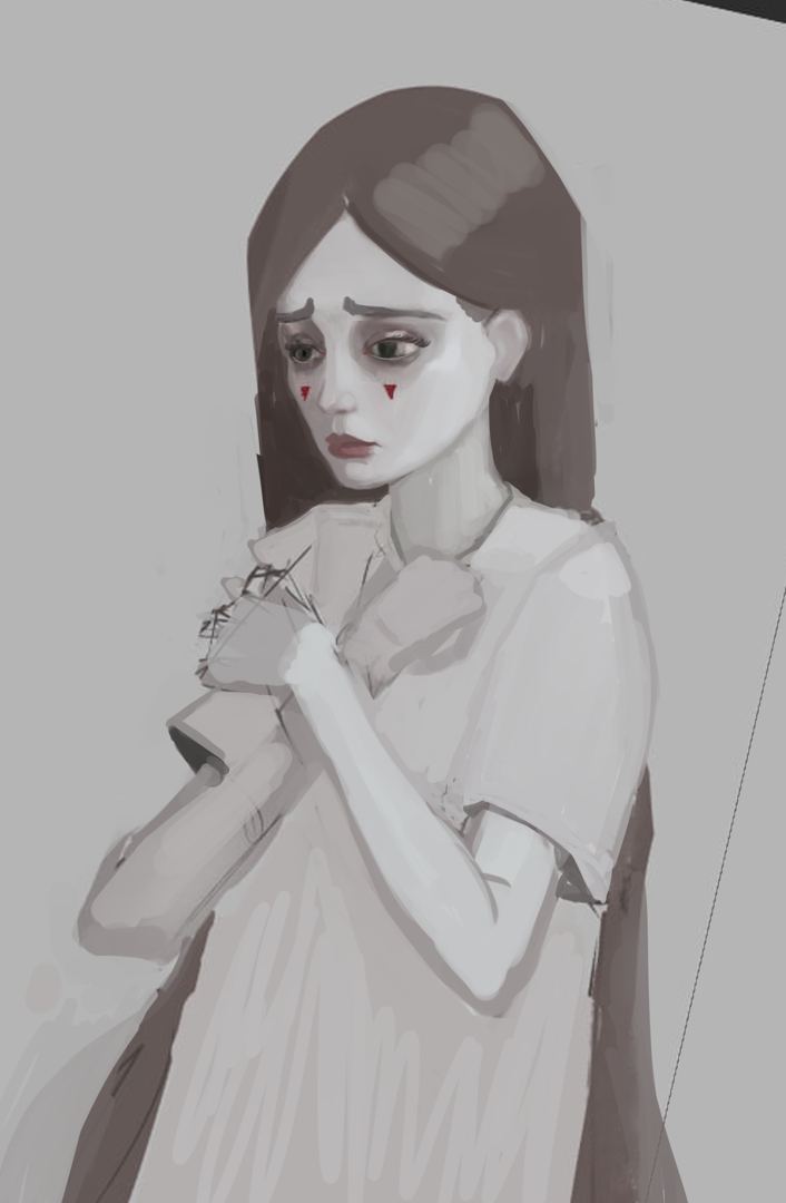 >>937577 Надо немножечко плана, перед тем как браться за кисть. Какая поза и какая эмоция? Почему она грустная, потому что веревочки не работают или потому что работают?
