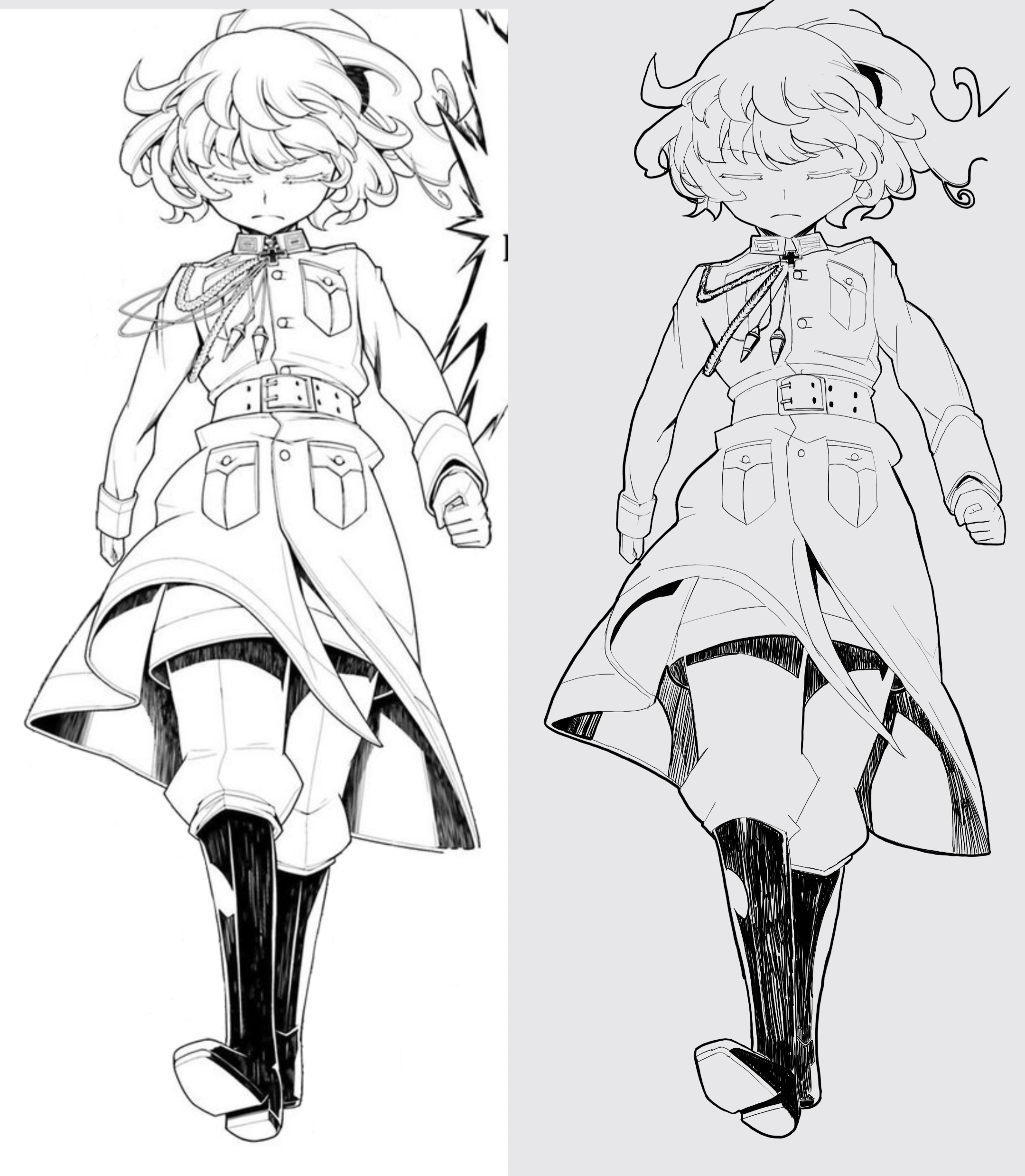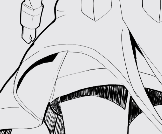 Еще такое замечание ты просто перерисовал, но думай иногда и про логику того чего рисуешь. У тебя конкретно в этом месте беда бедулечка. Ты просто скопировал что увидел бездумно, но там четко отделены слои ткани и свет. У тебя кусок залазит вообще наперёд и образуется невозможная фигура хтоническая. Ну это так придирка.