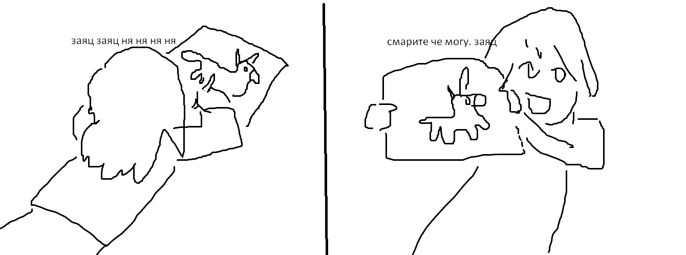 >>937962 это неправильная аналогия потому что первый чел просто так рисует зайца. а я не просто так рисовала