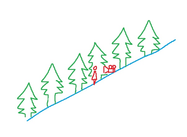 Даже натянув всё вокруг такой комедийной ситуации, деревья всё равно не сходятся вверху чтобы закрыть собой весь кадр, они скривленно идут вверх.