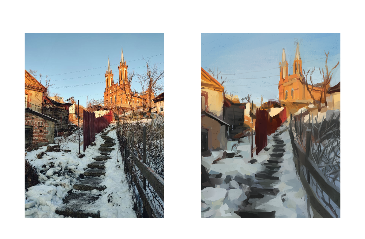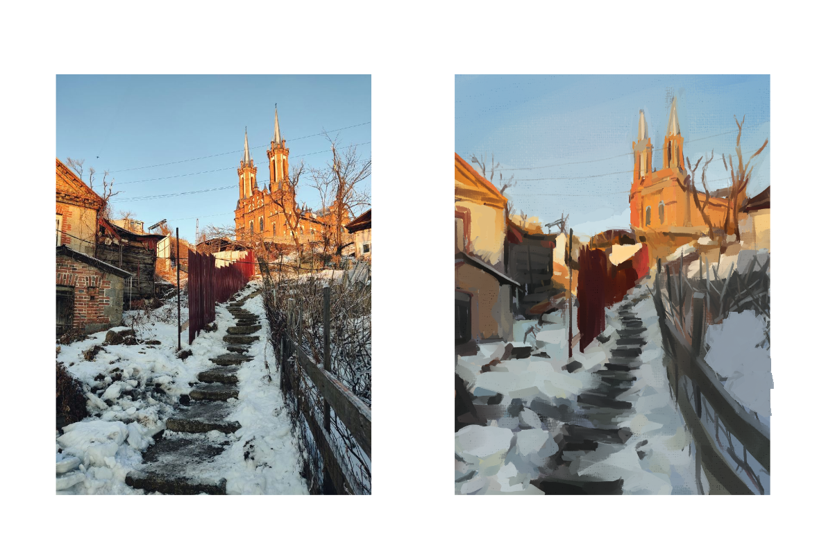 >>938132 >Даже с фишаем, на холме, с вручную выставленными деревьями, оно всё равно никак не совпадает с отсутствием компрессии и искажения в оригинальной картинке Просто нарисуй нормально. Всю сцену в одной перспективе.