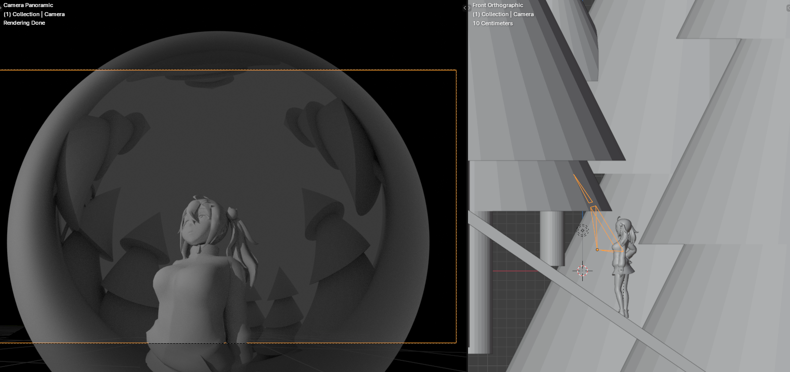 Но даже если мы предположим что у нас безумный угол обзора, девчушка должна искажаться так же как и всё остальное, на твоем рендере прекрасно видно насколько у нее искажен торс, влоть до того, что грудь смотрит на нас прямо, мы даже будто-бы не находимся ниже её. На первоначальной картинке она вклеена на фотообоои, как ни крути.