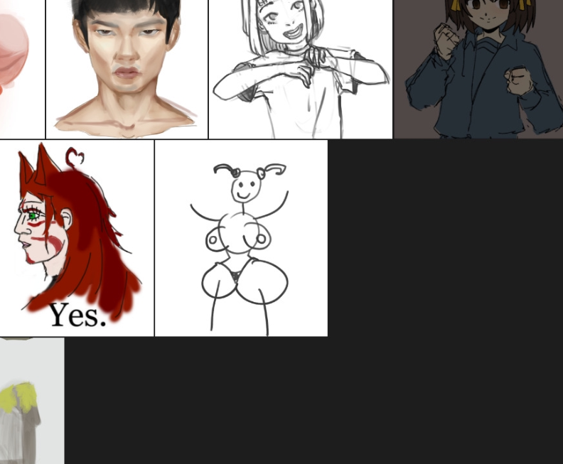 ИТТ аноны вопреки всему стараются и учатся рисовать, попутно выкладывая свою мазню всем на обозрение. Рады всем — от анимешников до любителей дрочить кубы.