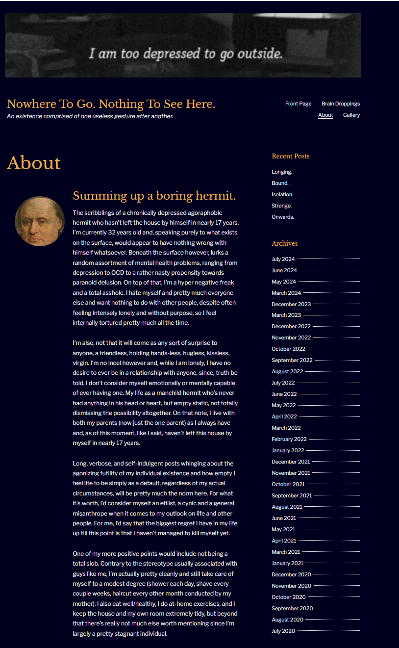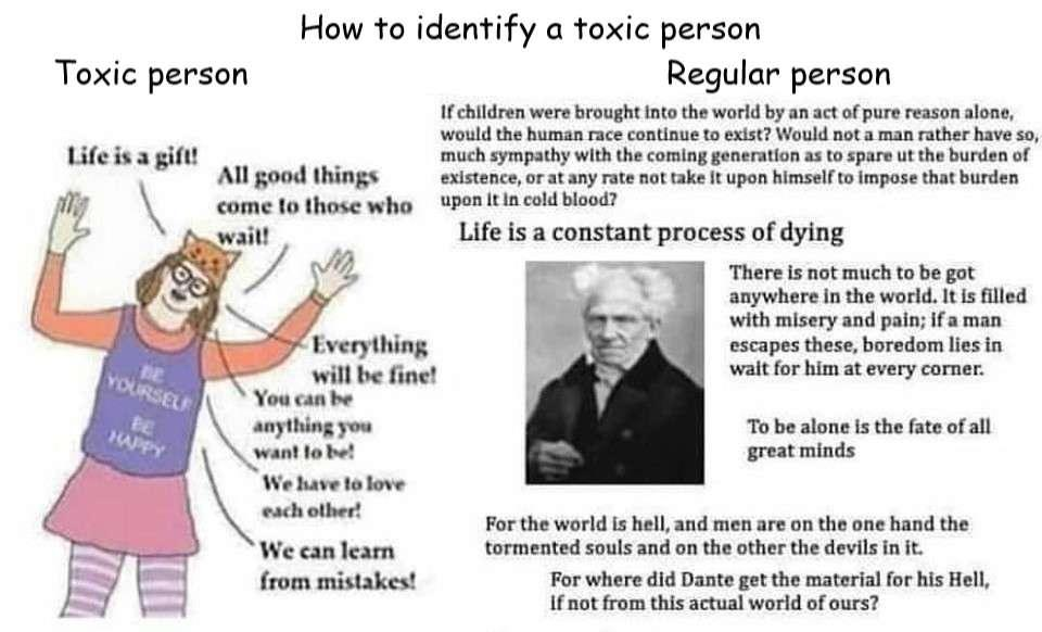 Лично для меня пессимизм это линия эскапизма и способность коупить лично свою, отвратную и неудавшуюся жизнь. Я не считаю что "быть живым это плохо", я считаю что разве что быть живым мне и такому как я плохо. И у нормисов, которые живут нормальной или даже превосходной жизнью (в плане вкладываемых усилий, результатов, здоровья, красоты, богатств) не будет такой отдачи, такой реакции на пессимизм, потому, потому что он не конгруэнтен их опыту. Говорить с удавшимися, богачами, красавицами про пессимизм - это как к тебе будут подходить на улице и говорить что в индии дети тонут в реках из говен. Более того, сам "пессимизм" нельзя ухватить и определить как что-то единое и абстрактное, как один набор правил. Короче, для меня это смазка чтобы ёбка от жизни была не столь болезненной, и я увидел, что я не один. И чем тяжелее период жизни, чем ничтожней низводит отчаянье - тем глубже и к более радикальным творцам обращаюсь. Какая-то чернуха, смерть, голод, шприцы, Птетенька, поедающий прыщи или мемуары смертельно больного - именно это отдохновенье. То есть, оптимизм дочки-красавицы кабан кабаныча оправдан, и она объективно не столкнётся с трудностями и болью, с котороц столкнётся никчёмный абортыш.