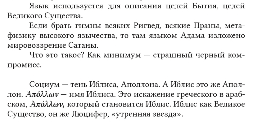 А Адам в общем им принес это черное откровение двойственности, и они обрели язык и перестали жить кайфуя. А еще он сказал что в христианской концепции в Эдеме значит тоже узнавание о добре и зле было позитивным событием. Вообще не палится это намек на гностицизм, но вообще когда впервые его слушаешь, про "черную точку", Аллаха как светящуюся тьму, кажется что это реально люциферизм сатанизм, как Медоваров говорил https://www.youtube.com/watch?v=yvaYSmESvpA