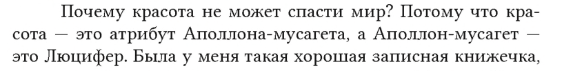 Но когда речь идет о шизоидном подполье, там есть эта соль, разъедающая все, трансцендентный субъективизм, который идет до конца, разъедает и уничтожает любые матрицы. И, наверное, это помогло мне в конечном счете перешагнуть через гипнотическую силу французского традиционализма."