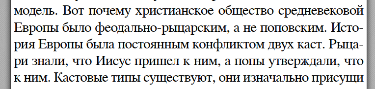 Еще интересно, что с Ницше он сходится в ненависти к "жрецам". Он считает, что жрецы любых религий обслуживают жизнь и космос. А Ницше ненавидит их за то, что они не обслуживают, а вредят жизни) Я тоже пришел к тому, что всякие батюшки и их ритуалы служат жизни. Они нужны, чтобы помогать людям, держать в порядке ментальное состояние и т.д. Только такая служба конечно несколько их дискредитирует в интеллектуальном плане. Чисто такой батюшка Савва Мажуко. У него в голове умещается десяток жестко противоречащих друг другу доктрин, – и римское язычество, и Платон, и Ницше, и старцы монашествующие и их соперники модернисты 20в., и какой-то мистицизм александровской эпохи про внутреннего человека, и при этом какой-то махровый племенной консерватизм типа "воспитай сына, будь мужиком, терпи, будь проще", – которые он на разных выступлениях 40-летним теткам объясняет, и говорит что это все православное. Ну собственно это я и имел в виду под жрецом, служащим жизни