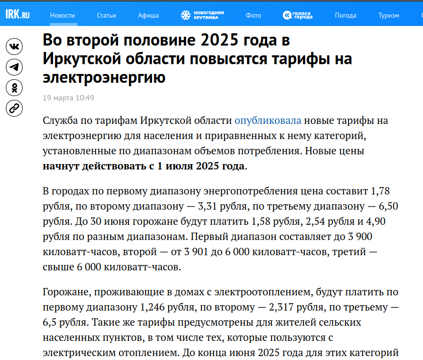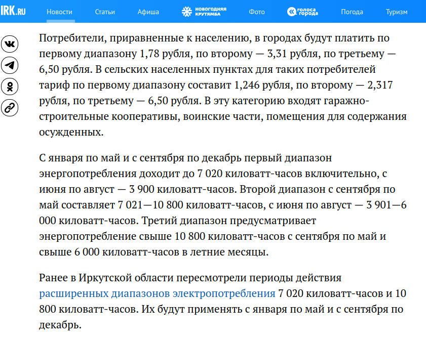 В 76 регионах России с начала года действует дифференциация тарифов на электроэнергию по трём диапазонам в зависимости от объёмов потребления. Согласно постановлению правительства РФ, «льготный» первый диапазон установлен на уровне до 3,9 тыс. кВт•ч в месяц. Максимальное значение для второго диапазона – 6 тыс. кВт•ч в месяц, превышающие его показатели относятся к третьему диапазону. Дифтарифы рассматривались в том числе как один из способов уменьшения объёмов перекрёстного субсидирования (доплата коммерческих потребителей за снижение тарифов для населения). Установление таких границ объясняется тем, что большие объёмы электроэнергии по льготным ценам ранее приобретались в коммерческих целях.