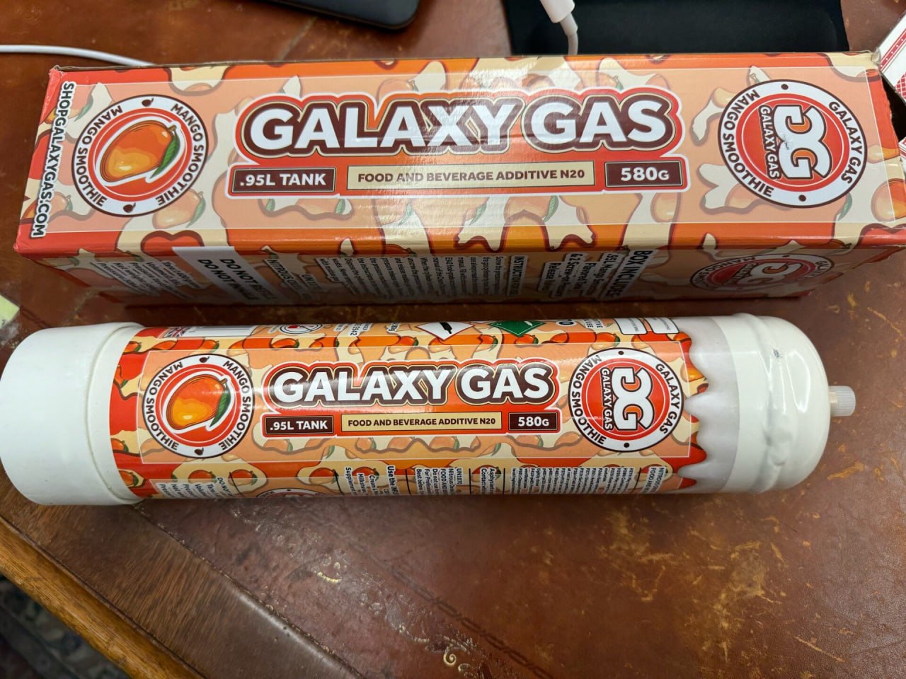 В Америке пару нет назад было совершенно легально продавать веселящий газ Galaxy Gas с приятными ароматическими добавками для вдыхания внутрь. Он продавался абсолютно везде - от супермакетов Wallmart до киосков 7Eleven. Употребление вовнутрь вызывало кратковременное чувство "кайфа" и расслабления. Он продавался без возрастных ограничений, из-зачего дети и подростки быстро подсели на него. По составу это была закись азота.