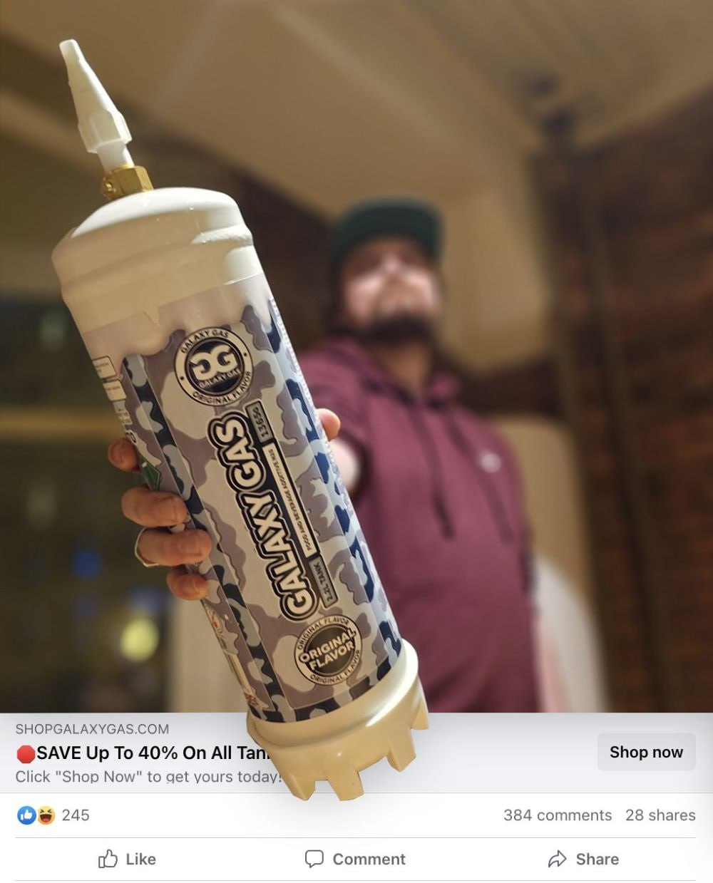 Несмотря на то, что на упаковке от газа было написано что он нужен для дозаправки баллончиков для заварного крема, он рекламировался блогерами в Тиктоке, Инстаграме и на Ютубе. Согласно статистике Министерства Здравоохранения США более 25млн американцев, начиная с 12 лет, уже попробовали ароматический веселящий газ для вдыхания вовнутрь. Средний возраст потребителей - 12-17лет.