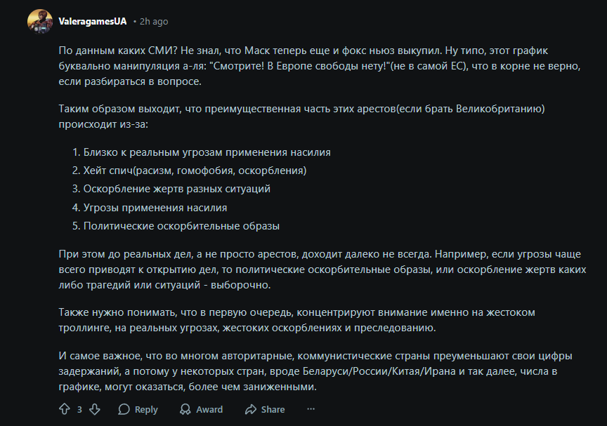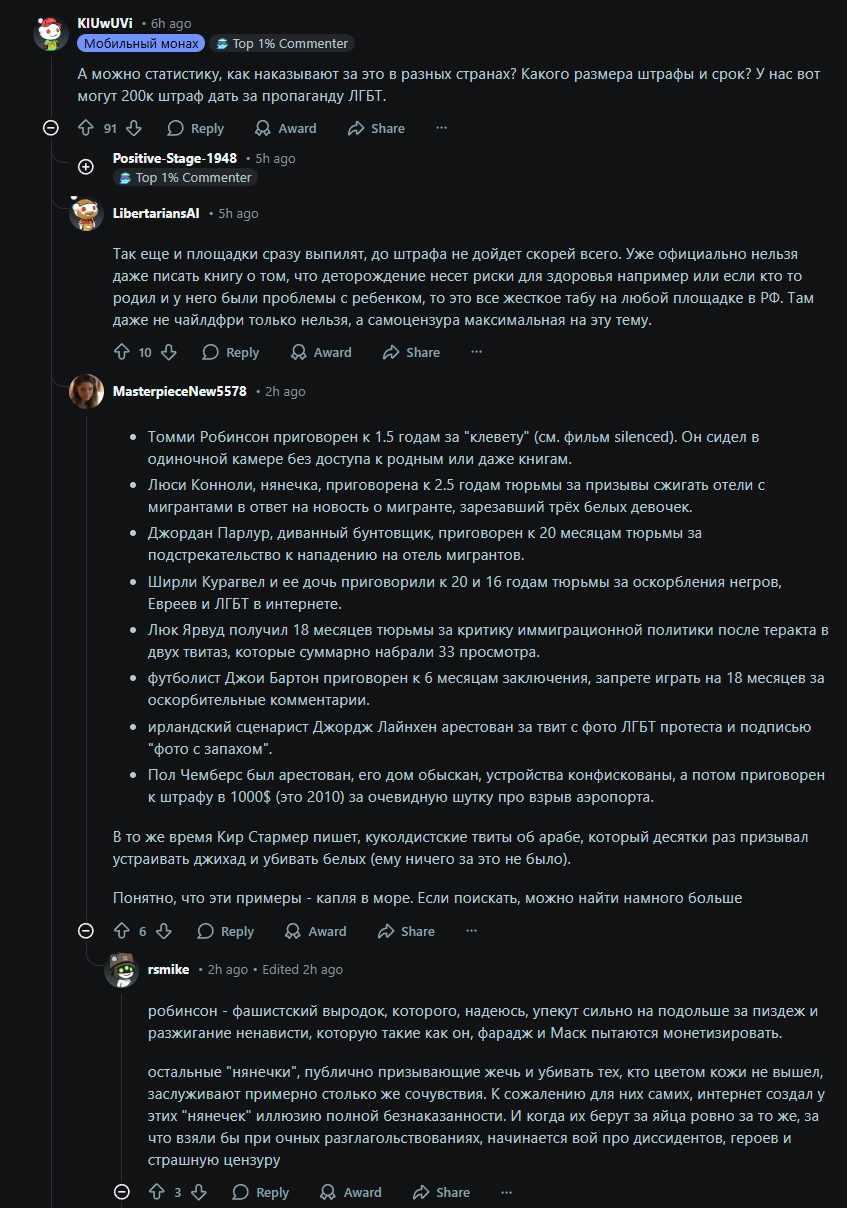 >В Великобритании за год арестовали 12к человек за комментарии в интернете (1 место в мире) >АРРРРЯ ФРЬОТИ, А ВОТ В РАШКЕ ПАРАШКЕ ПОСЧИТАЙТЕ, ТАМ ПРОСТО ЗАНИЖАЮТ НИПРААААААВДА!!!