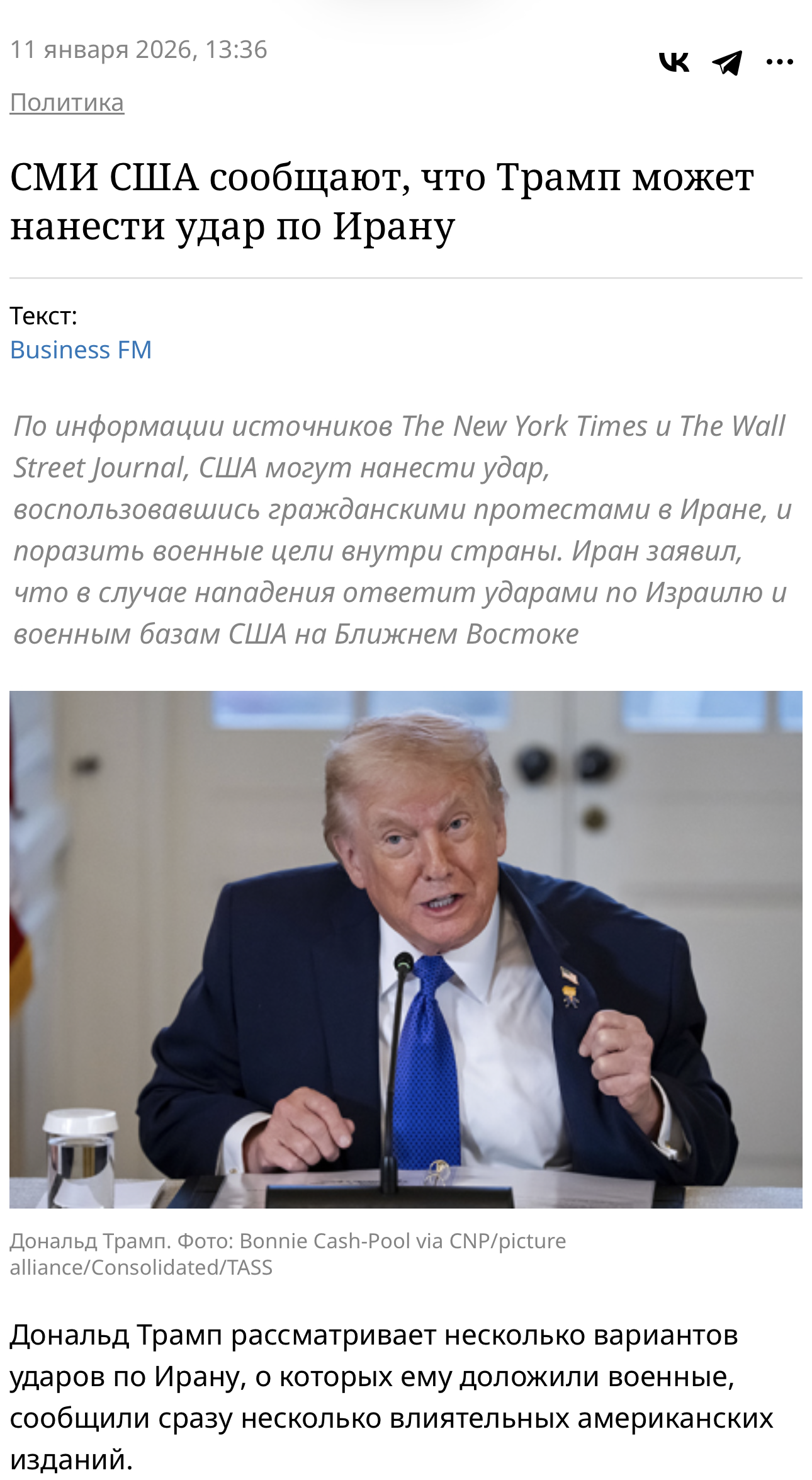🇺🇲 Тем временем США обсуждают меры поддержки протестующих, в том числе удары по Ирану.