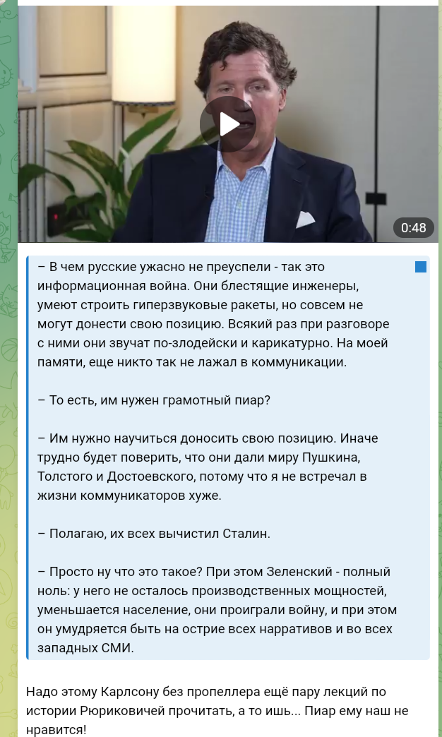 >>61961465 >>61961126 (OP) Лузл в том, что какер таклсон не понимает о чём говорит. Он оторван от реальностей россии так же, как любой другой американец. Он как те дауны, которые ведутся на пропаганду что у нас тут традиционные ценности, переезжают сюда, а потом удивляются почему нельзя оружие носить и почему вообще вокруг происходит какая то дичь. он думает тут базовички, а тут беспредел с баринами и холопами + тотальное распиздяйство и похуизм. Так что его мнение это хуйня, на которое можно не обращать внимания. Пусть здесь поживёт годика 3 в тамбове каком нибудь, посмотрим что он после этого будет кукарекать.