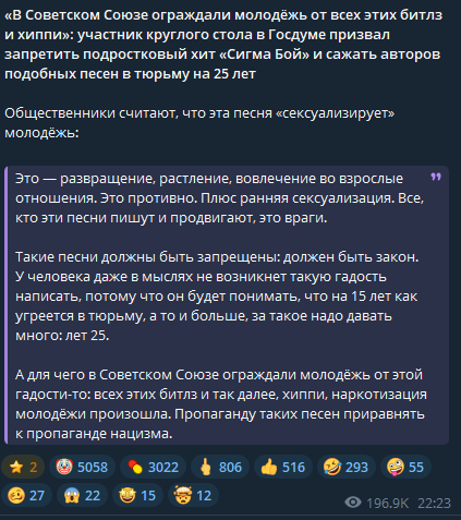 Вы только вдумайтесь на самом деле, насколько же они трясутся из за обычной песенки, просто песни которую спела какая-то малолетняя девочка. Чуется мне рухнум близок уже... 89 год...