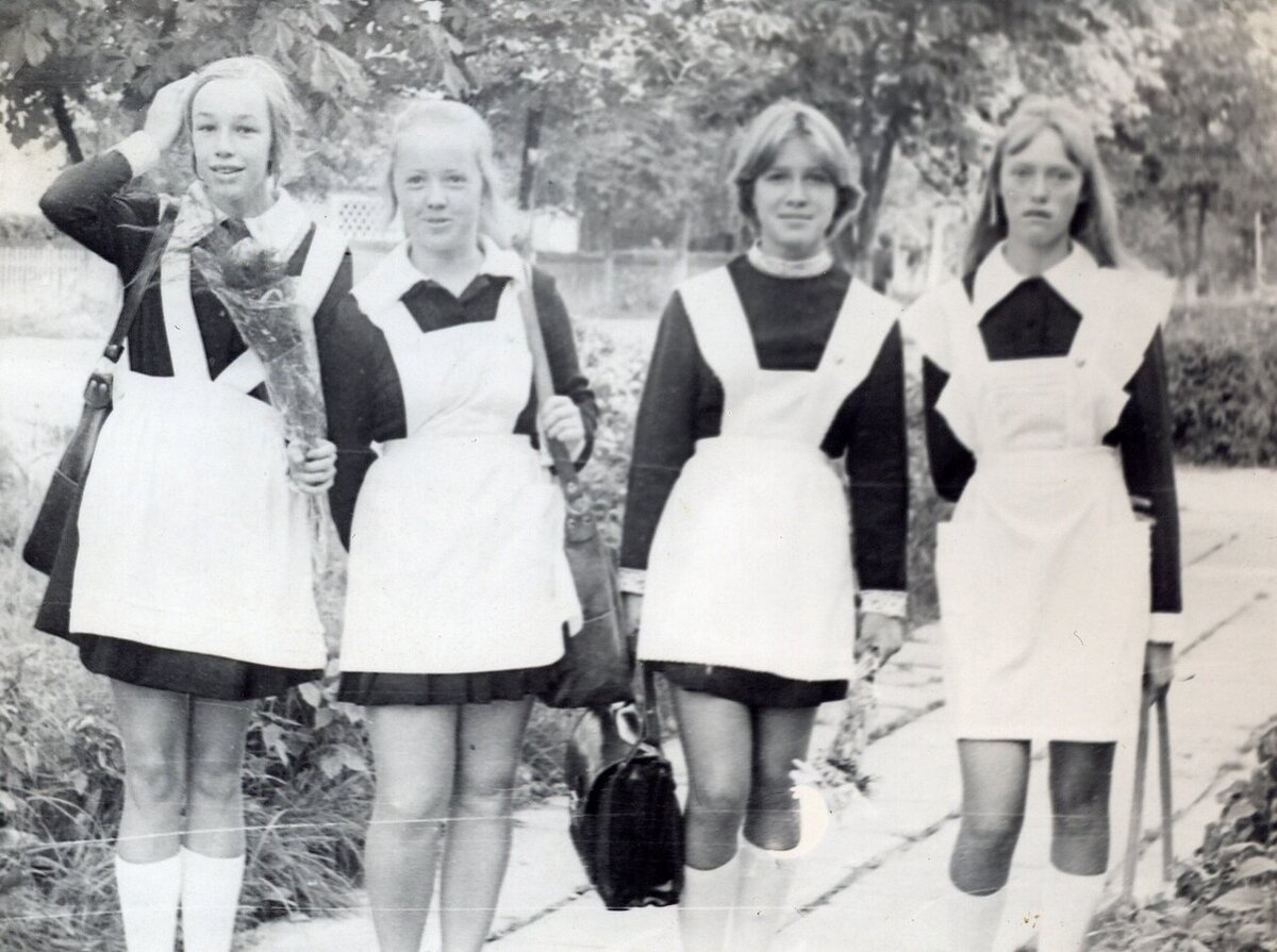 Казалось бы, все просто и скучно, но не тут-то было! Что появилось в 60-е годы в Советском Союзе? Правильно, в моду вошла длина мини. Разумеется, она не прошла мимо старшеклассниц. В конце концов подол школьных платьев немного укоротили, но он не должен был быть выше 10 сантиметров от коленей.