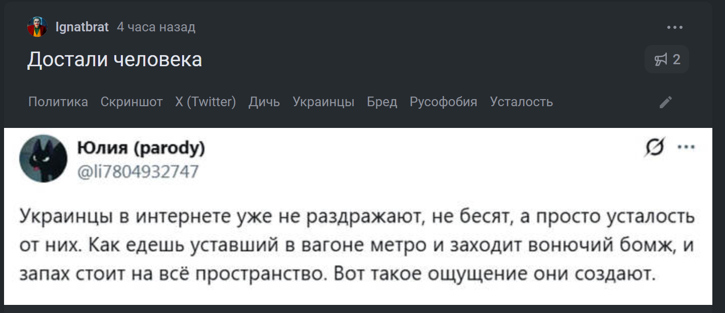 >>60957497 Смотрел его видосы когда то. Но он постепенно превратился в визгливого кукаретника как и большая часть копроопозицции типа того же яшина, гудкова и т п. Никак не могу вспомнить ни ник не имя блохера, который свалил во францию или португалию, который с выпучеными от еатуги глазами всегда срывался на крик. Вот и новиков на такое стал походить. Ещё был мужик с флагом военной разведке на заднике, адвокат, не помню опять, тож скатился. Слабые и малозначушие люди, когда получают хоть каплю внимания, превращаются в идиотов.