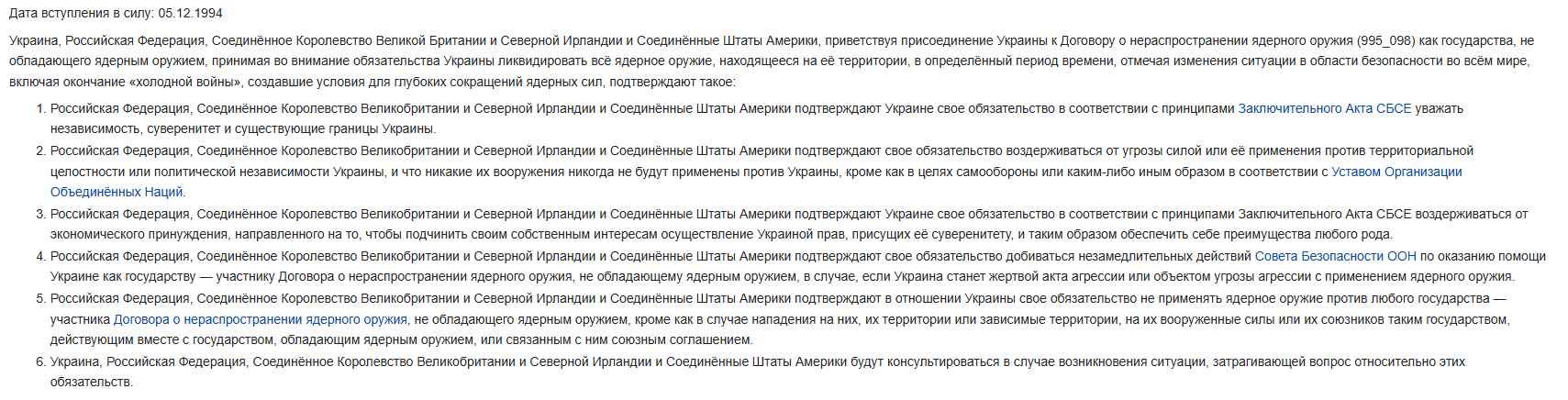 >>61296134 >похерила Будапештский меморандум Похерила будапештский меморандум РФ анексировав Крым в 2014 году,хуесоска. Во вторых там нет ни одного слова про то что Украина не может вступать в нато. сиди оптекай